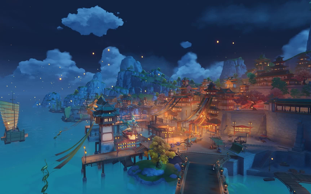 “原神”中的璃月港以其山水之间的大格局奠定了国风基础,以中华大地上壮丽的建筑奇观为原型,幻化出一座无比惊艳的东方古城。