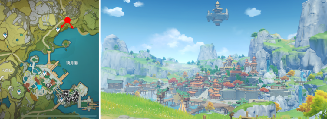 由此可见,依山傍水是中国传统城建思想的体现。璃月港的地理大环境符合中国传统文化意蕴,是主要的原因之一。构建了依山傍水的大环境,便是为这座城市的国风基调奠定了基础。