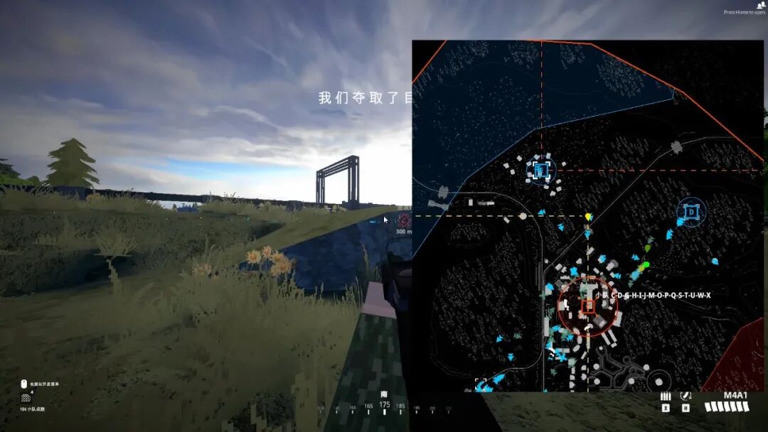 在当前开放测试的服务器中,《BattleBit Remastered》仅提供了征服模式,即占点玩法。类似于战地系列中的边缘标记,《BattleBit Remastered》会显示一定距离内的目标点提示性icon,但是取消了位于顶部的常驻图标,玩家仅能通过地图来了解当前的局势分布;但从另一个角度讲,这样的设计能够让玩家更加专注于当前的战斗界面,达到类似于使命召唤系列游戏中的沉浸式效果。