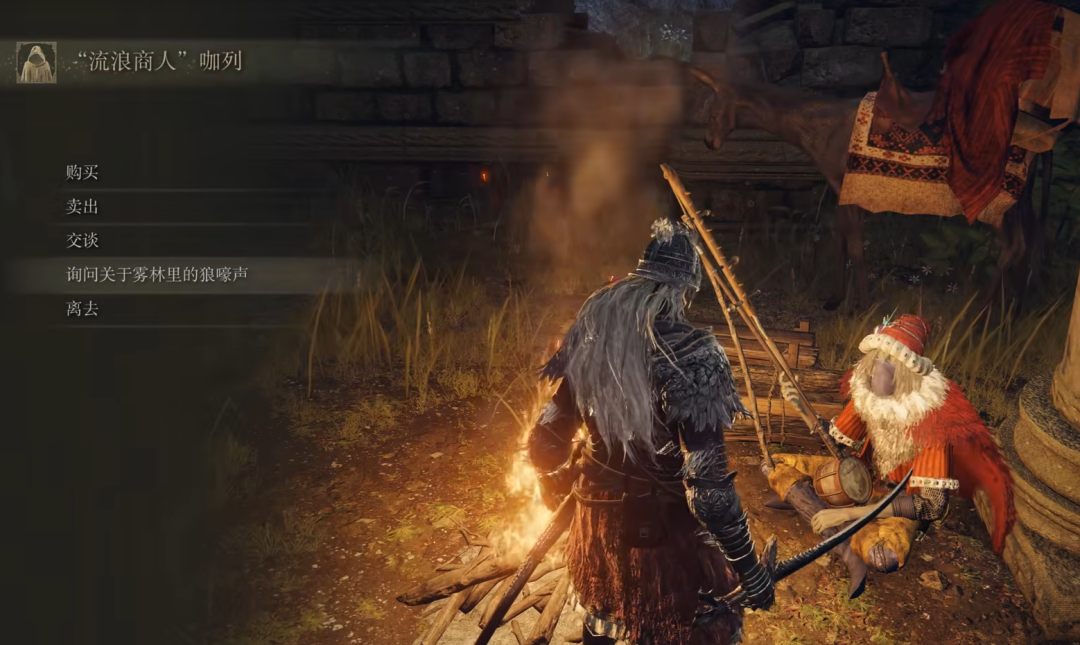 在游戏中,几乎所有包含引导的元素都被碎片化地设计在不同的交互层级中:部分赐福点发出指引方向的发光箭头、商人贩卖的情报、与NPC的对话、持有物品的文本等。