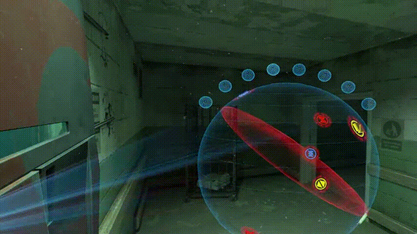 《半衰期:爱莉克斯》采用了一种极其聪明的方法——隔空取物,玩家在游戏一开始就会获得一双重力手套,通过做出“指向☞”的手势,游戏中就会出现一条从玩家食指到指向方向最近的可拾取物体的提示线,可以拾取的物体也会用高亮标注出来,这时玩家只需要轻轻抬一下手,被指到的物体就会飞向玩家,然后再用手接住即可,在熟练使用这一套操作后,甚至可以一边用右手同敌人战斗,一边用左手隔空取物收集物资。