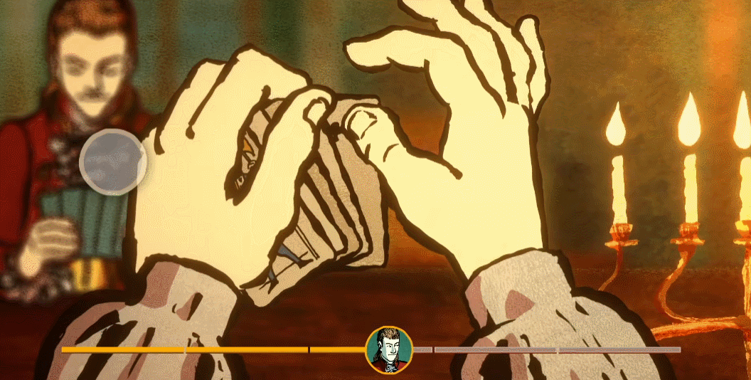 这就是游戏《千爵史诗》的开场。《千爵史诗》由 Nerial 开发,Devolver Digital 发行,于2022年6月3日登陆 PC 和 Switch 平台,是一款充满狡诈、阴谋和甜美诡计的冒险游戏。在游戏中,玩家将扮演一位默默无闻的失语少年,与历史上充满谜团的人物“圣日尔曼伯爵”一同展开冒险,学习各种千术,在坑蒙拐骗的同时循着各路牌手提供的线索,逐渐发现王室所隐藏的黑暗秘密。