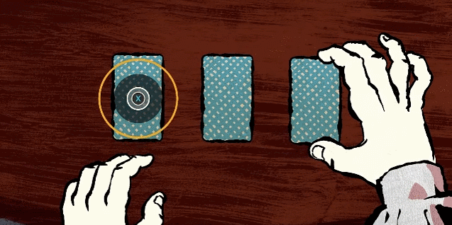 然而这种方法会带来一些问题。比如说,现实中在众目睽睽之下用娴熟的手法神不知鬼不觉地在切牌过程中藏下某张大牌,感觉技术非常高超,可如果游戏里对应的操作仅仅是推动一下左摇杆,这可能会给玩家造成一种操作上的缺失感。而且越到后期,重复的操作越多,这种感觉就越深。