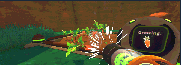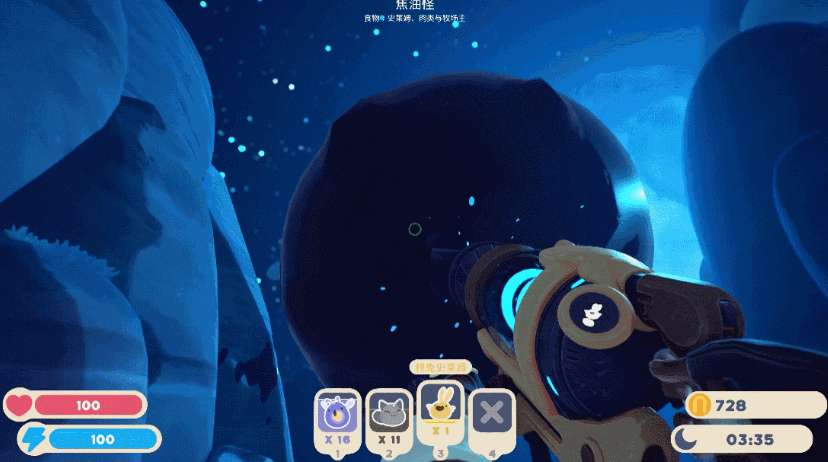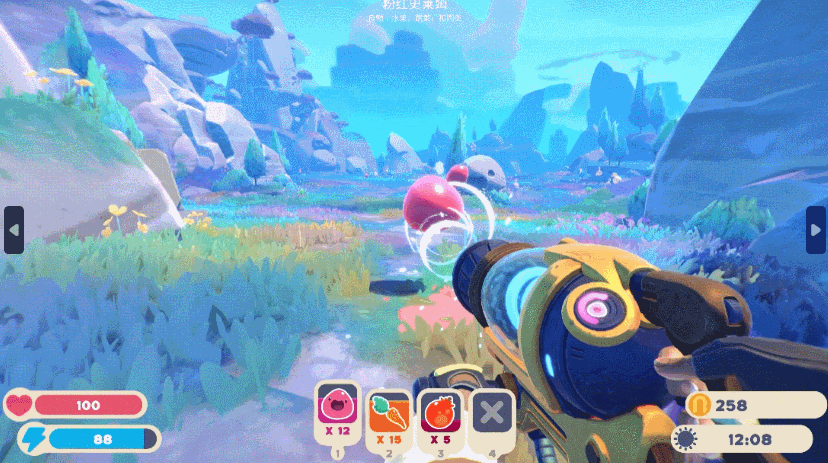 在简单的新手引导过后,玩家就将进入自由探索的阶段,走出庭院的大门,迎面而来的就是各类可爱的史莱姆。玩家需要操纵真空枪,把这些黏糊糊的生命塞入背包。转动的真空枪引擎、逼真的吸入音效与可视化的空气流动特效,像是在现实生活中用高科技气枪一样随心所欲地收集各类物体,令玩家感受到最真实的互动体验。
