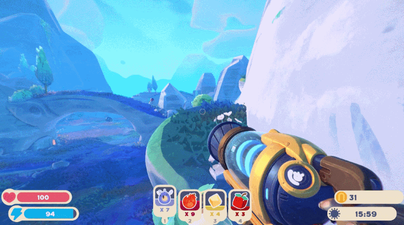 说起模拟经营游戏,许多玩家脑海中往往会浮现一块大型沙盘的俯瞰视角,上面遍布着各式各样的建筑,或是农田,玩家通过简单的鼠标点击即可进行交互以实现“种菜”、“收菜”操作。然而,2017年上线的《史莱姆牧场》采取了别开生面的方式,玩家将以第一人称视角移动,手持一把真空枪,可以吸入史莱姆及其结晶、蔬菜水果、小鸡等各类物体,存放在背包中;同时也可以选择用手上的真空枪将背包中的物体吐出,把史莱姆关进牧场栅栏、将结晶吐向收集器以换取金币、抑或是给史莱姆喂食……