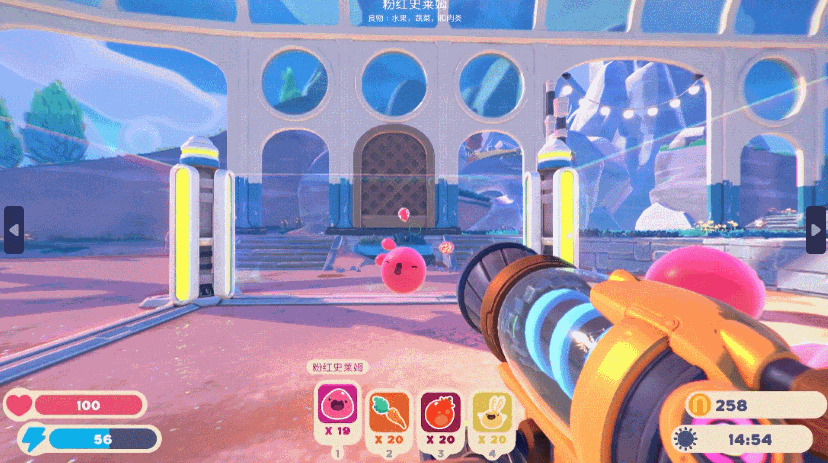 《史莱姆牧场2》虽说是一款模拟经营类游戏,但其绝大部分的操作交互都依赖于真空枪,也因此带上了第一人称射击的标签。除去前期简单的抓获史莱姆外,游戏后期还有更多新奇的功能需要玩家探索发现,也有更广阔的地图与丰富的史莱姆种类,因此它又可以被定义为自由探索类游戏。