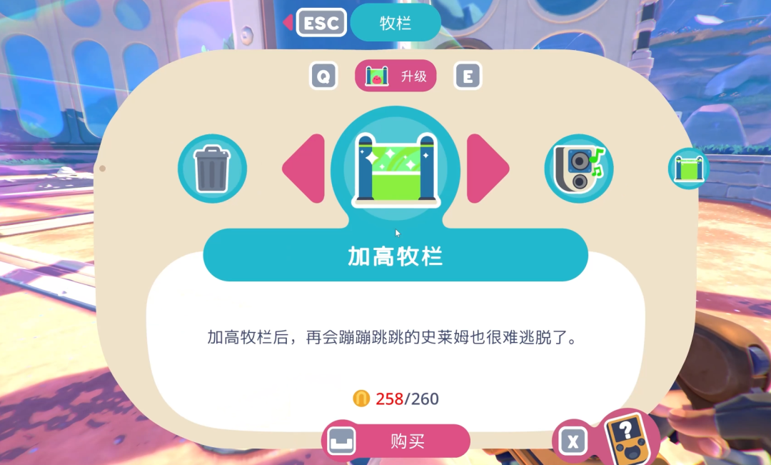 建设牧场、修建牧栏的操作也很简单,玩家可以在已有土地的启动器旁选择建造相关设施或是升级,以此打开相关界面进行操作。按钮少、交互方式多样,相关的文案介绍俏皮且清晰了当,满足了各类玩家的需求体验。