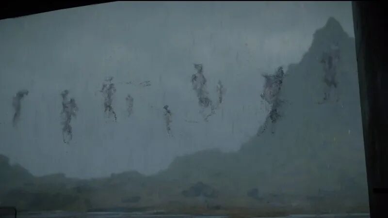 苔藓、岩石、云雾,简单几个的镜头展现了地图中的地貌和气候,而山姆骑着摩托扬起一路飞尘,配合音乐,几乎定下了整款游戏的氛围和基调。有人说,小岛在这一刻便开始彰显他的品味。
