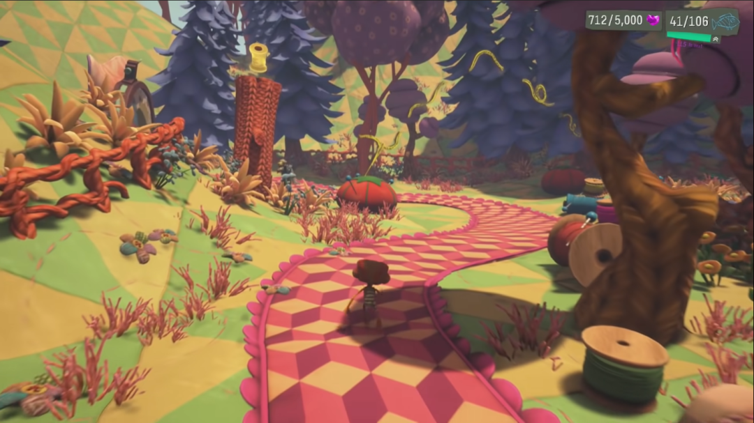 例如,拉兹奶奶的脑内世界是由温暖的毛线织成,在视觉上也多为柔和的圆角,在通关时也不需要什么惊险刺激的跳跃动作;而另一位绑架犯口腔医生的脑内世界中,关卡的要素无不与牙齿、牙龈、肉块等口腔组织相关,包括牙齿组织形成的平台,遍地的牙齿装饰等等,与角色的形象和经历相契合。