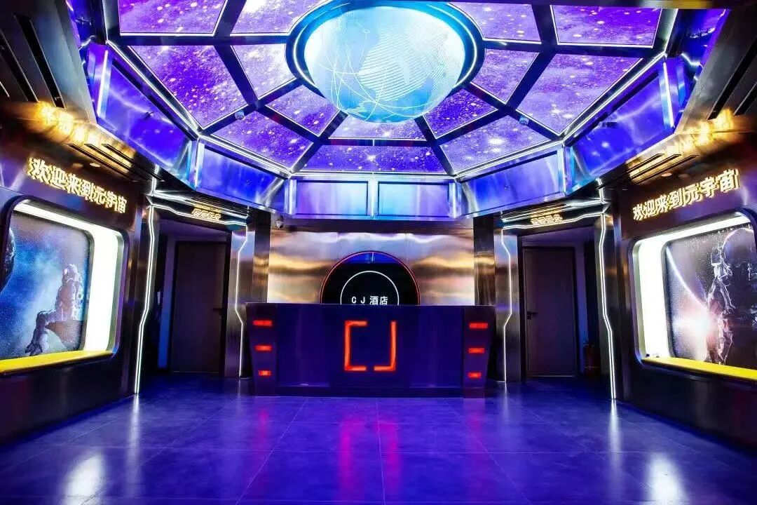 CJ酒店诞生于2020年,“年龄”虽小,但在硬件产品、软件核心以及服务内容体系上都打破了传统酒店的局限:酒店联合了腾讯游戏人生、美豪酒店集团、快看、RNG.M战队等多方平台,聚集了国漫IP、游戏电竞特权、4D影音、Z世代潮流馆、社区运营、智能科技系统共六大主题,致力于打造“第五空间”。