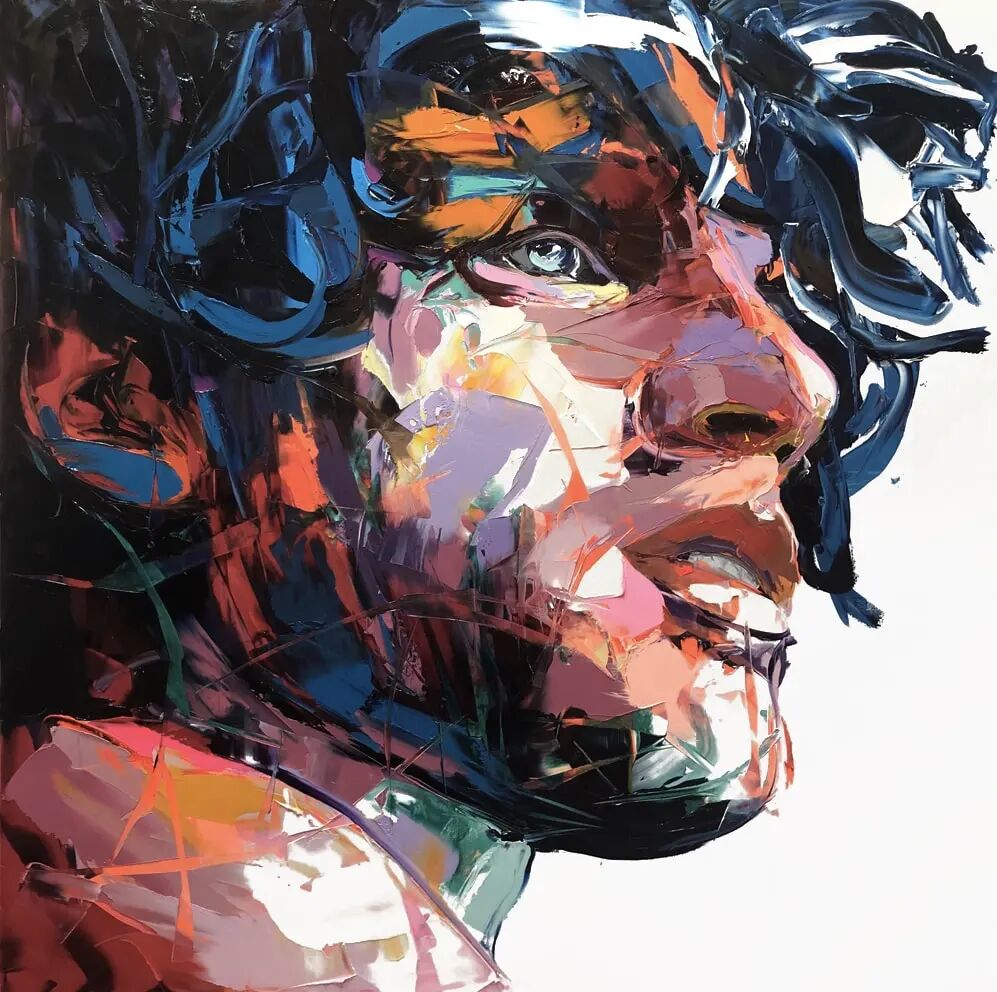越是困难,越是有人愿意发起挑战,艺术家弗朗索瓦·尼尔利就用调色刀,和充满活力的油画颜料,创作了一系列画作,而且还是肖像画。要知道,用调色刀画肖像画的难度,那可是又增加了。弗朗索瓦·尼尔利的人物肖像,充满层层叠叠的笔触,与复杂的色彩,描绘出了人物的五官特色。