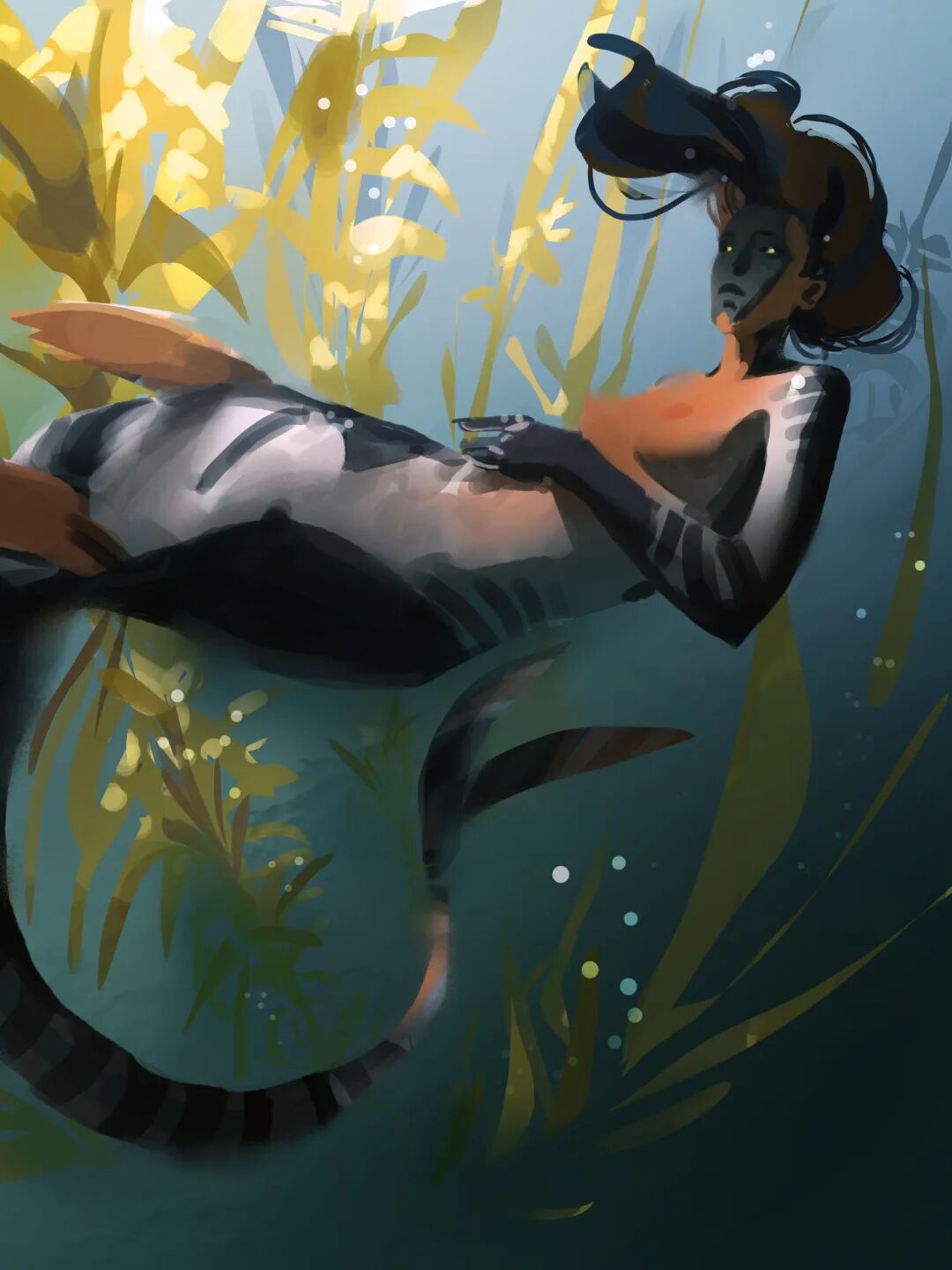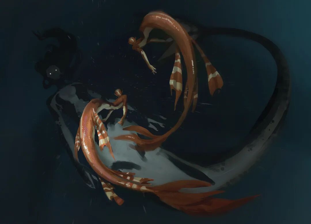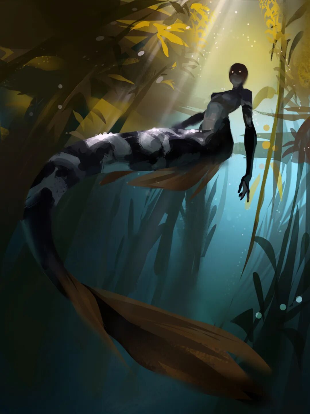 他的作品中经常出现美人鱼、巨人等奇幻的种族和生物,Axel善于使用丰富的色彩和大胆的笔触描绘这些不存在于现实的生物,赋予它们神秘怪诞和独特的美感,使得画面充满氛围和故事性。