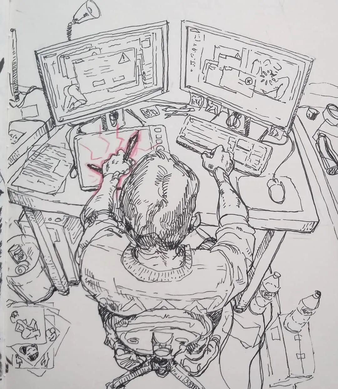 Axel常利用午休时间进行速涂,许多作品细节并不丰富,但结构和表现力依然很强。