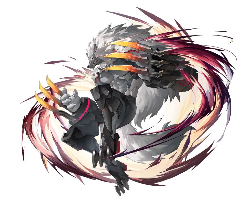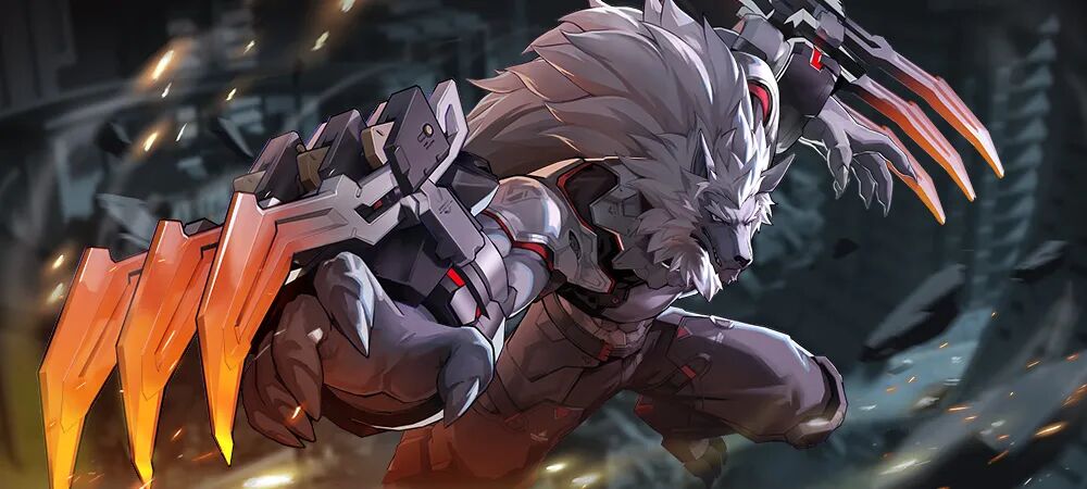 以超人气职业狼人为例,该角色以暗灰色系为主,通过添加火焰的赭红色,冷暖搭配形成色彩的撞击感。作为近身格斗型角色,不管是造型还是本身强度,都是游戏中TOP的存在,迭代后的立绘表现使角色更加丰富。