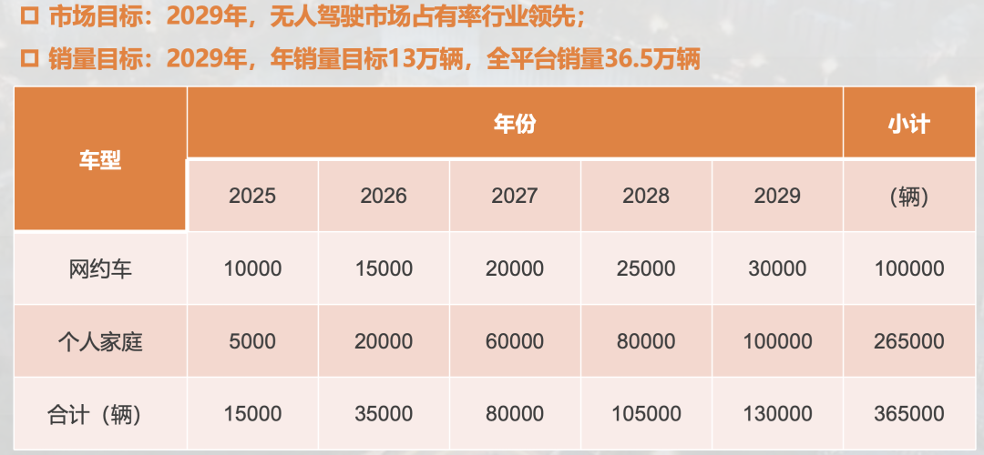 概念车的设计图都还没有,销量预估都已经做好了,定个小目标,到2029年累计卖它个36.5万辆。