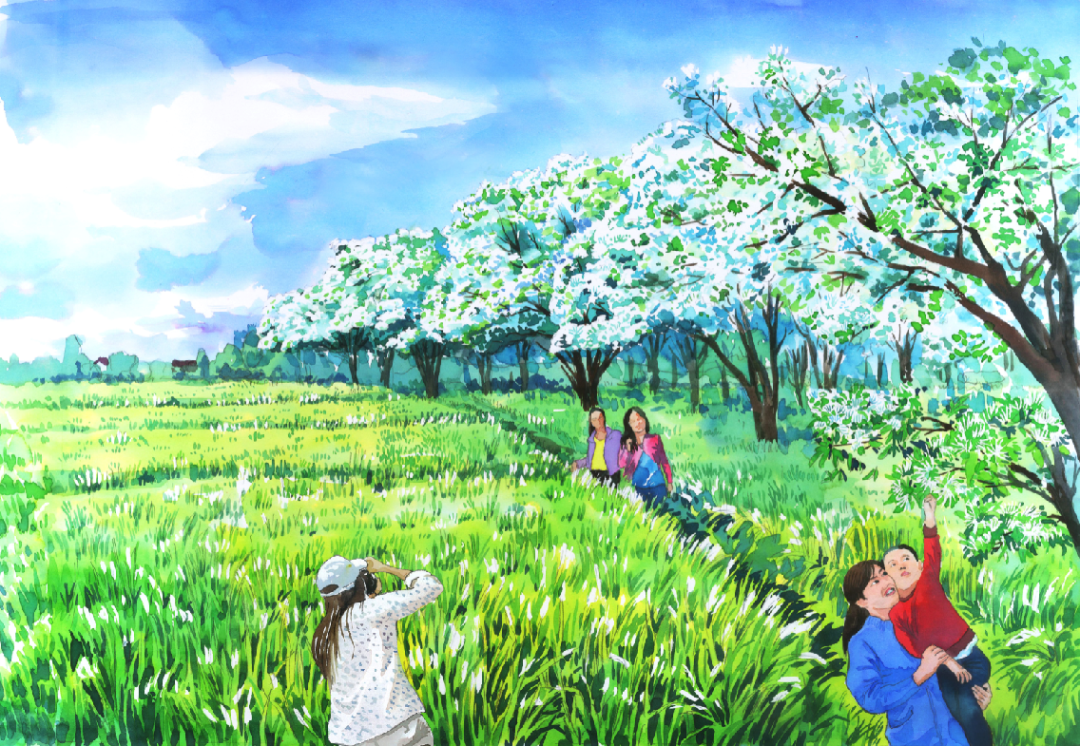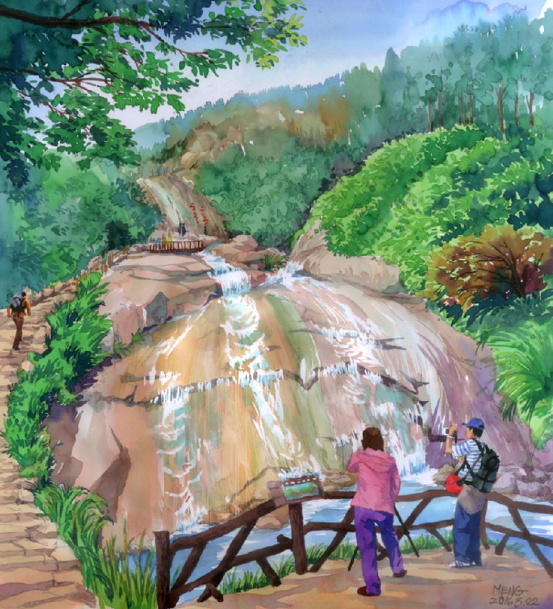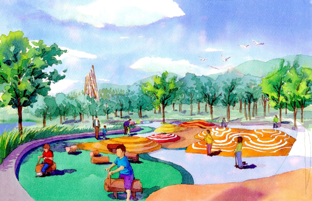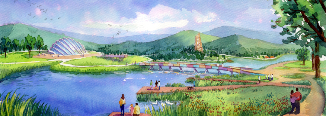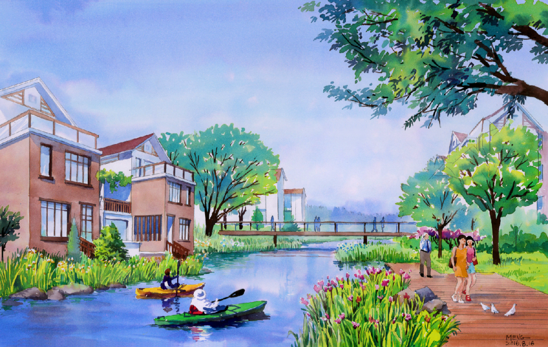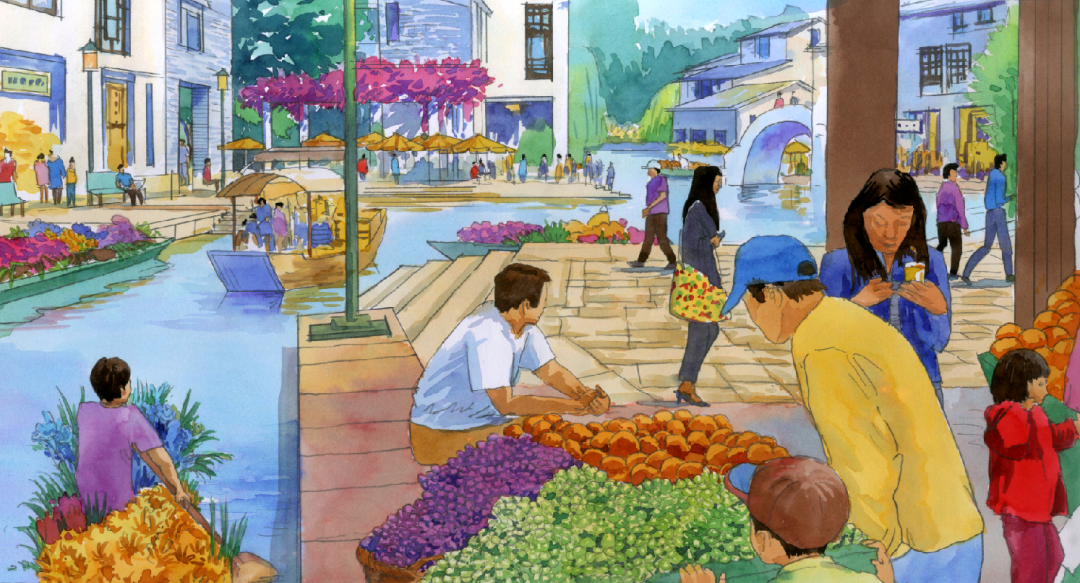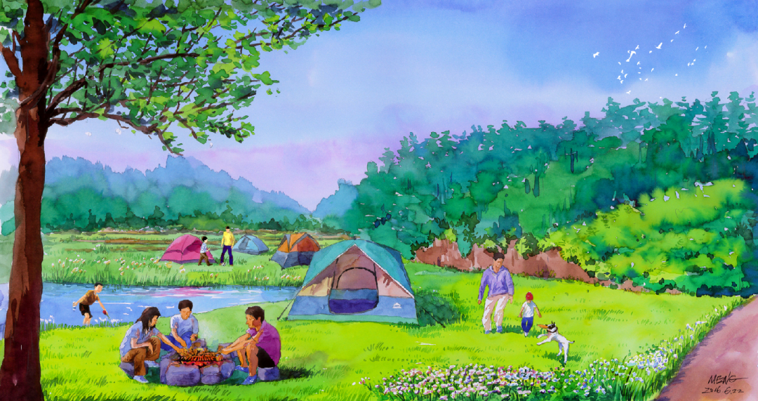 这位我们非常熟悉的老朋友陈应梦美术功底极其深厚,景观手绘图中的配景主要包含:天空、植物、石头、城市、道路铺装、车辆、人物、水体及小型构筑物都在他的手下栩栩如生。