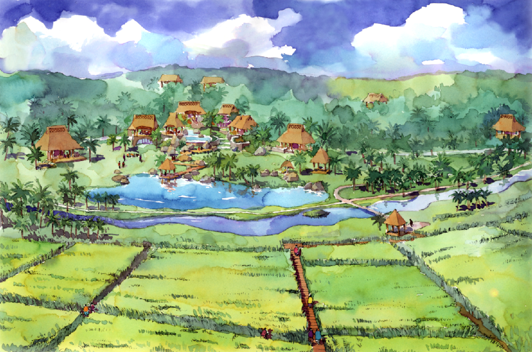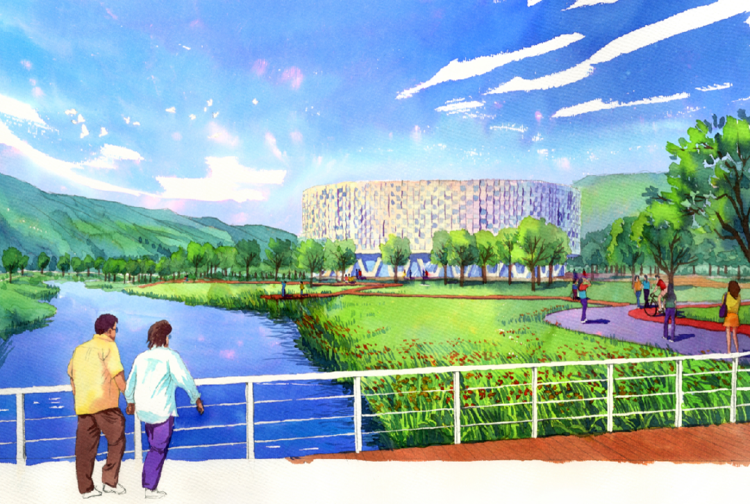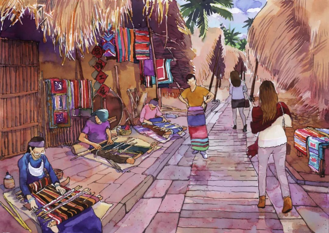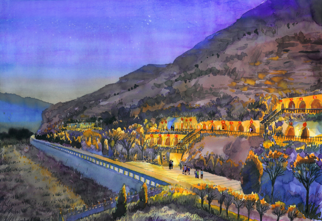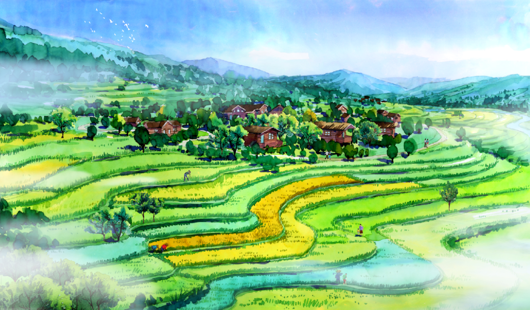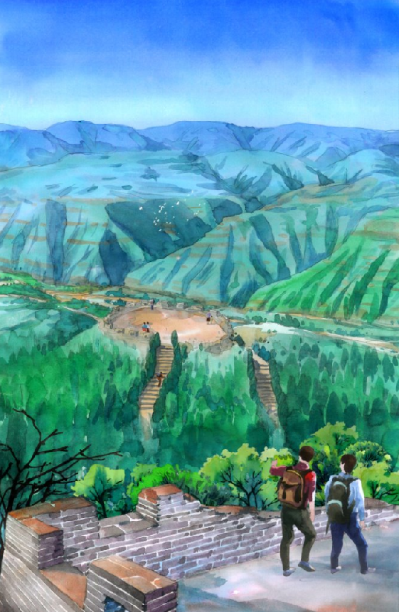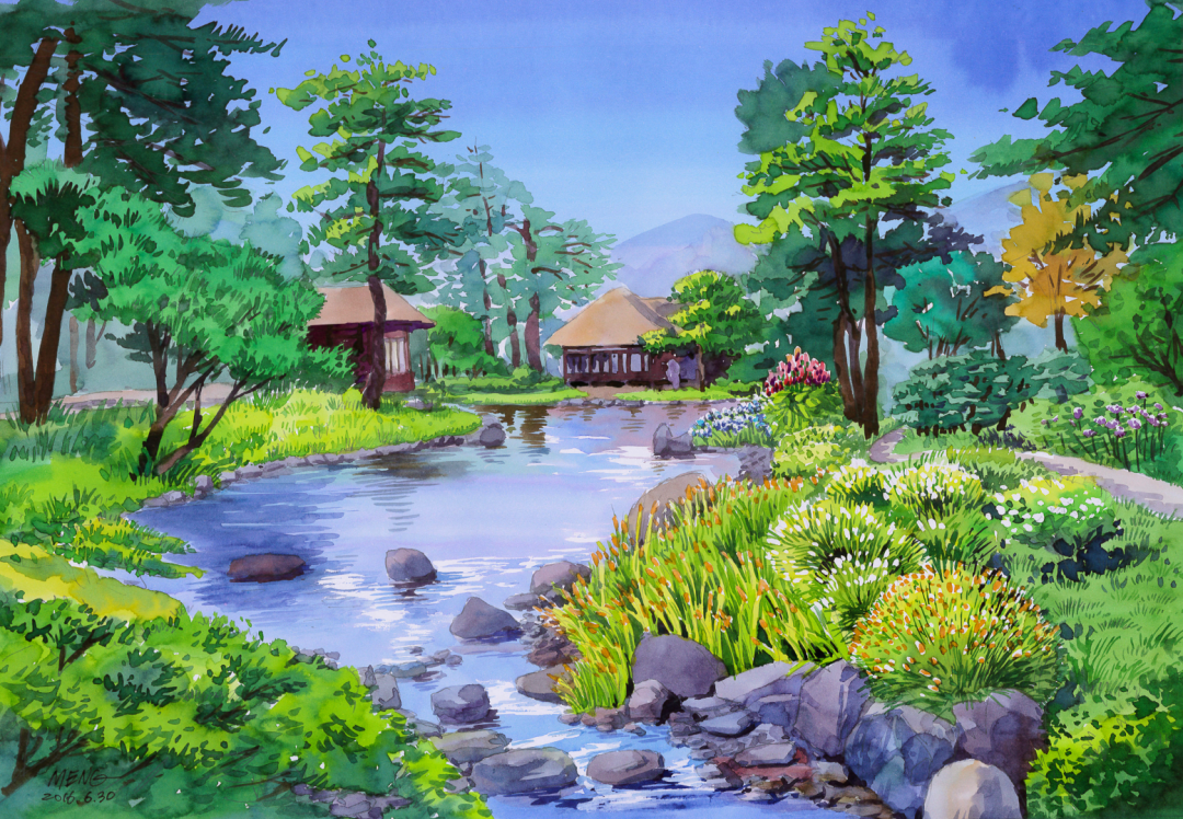 这位我们非常熟悉的老朋友陈应梦美术功底极其深厚,景观手绘图中的配景主要包含:天空、植物、石头、城市、道路铺装、车辆、人物、水体及小型构筑物都在他的手下栩栩如生。