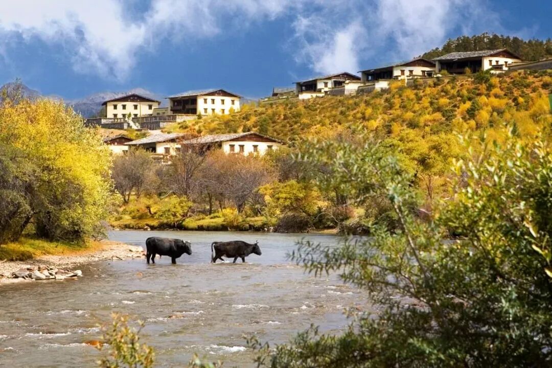 仁安悦榕庄的选址另辟蹊径,远离了闹市和景区,坚定地落址在香格里拉腹地的仁安河谷。古法营建的藏式牧舍风格客舍随山势错落排布、任溪川在其脚下蜿蜒而过,葱翠的绿意和悠然的牛羊马匹装点四周,将人间仙境图景勾勒得活灵活现。