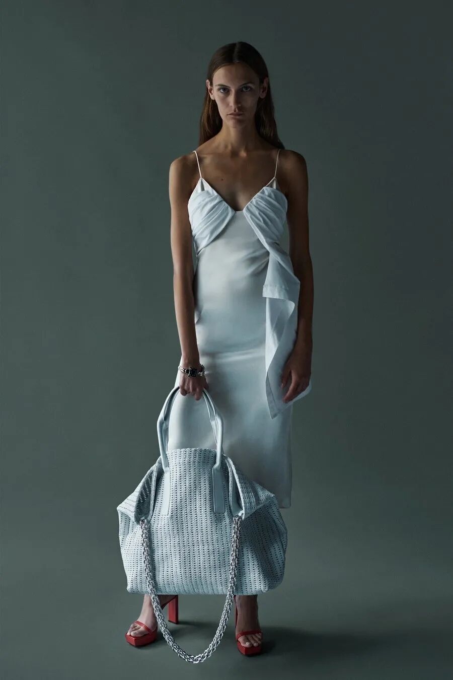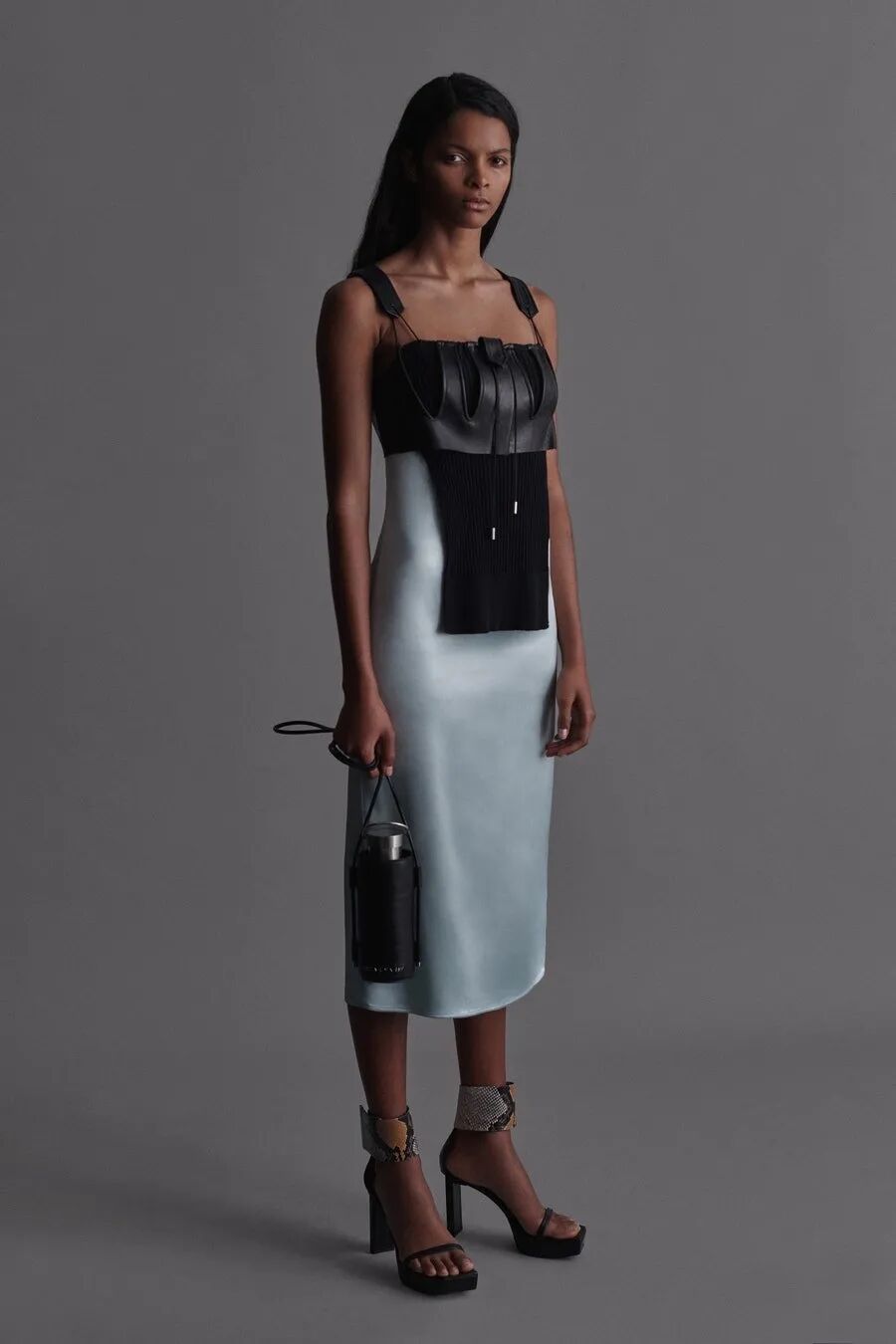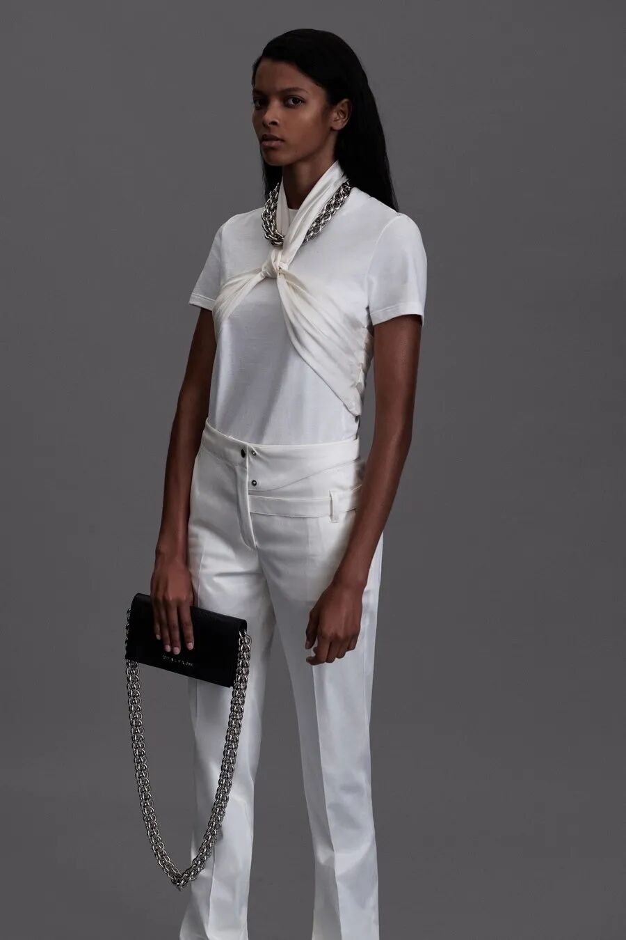 Matthew Williams这季中加入了许多象征女性柔美的线条,早期风格中的僵硬的部分被抛弃。Williams运用多变的设计在胸部以上打造出优雅,腰部以下打造出舒适,再用蕾丝与皮革加持。
