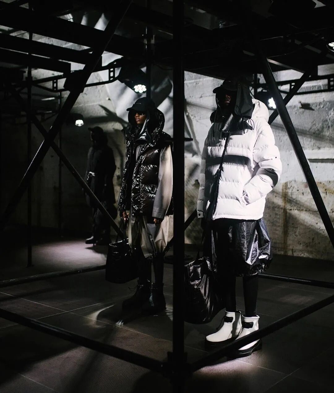 在这个系列中,Williams将皮革经过特殊树脂处理,将高级的光泽感注入到面料中。他还将100% EVA聚合物应用在运动鞋中,增添了设计材料的多样性。Williams还将经典的Alyx的皮带扣移除,取而代之的是一根新的细长的金属杆,用来在夹克的腰部和裤子的小腿处束带。