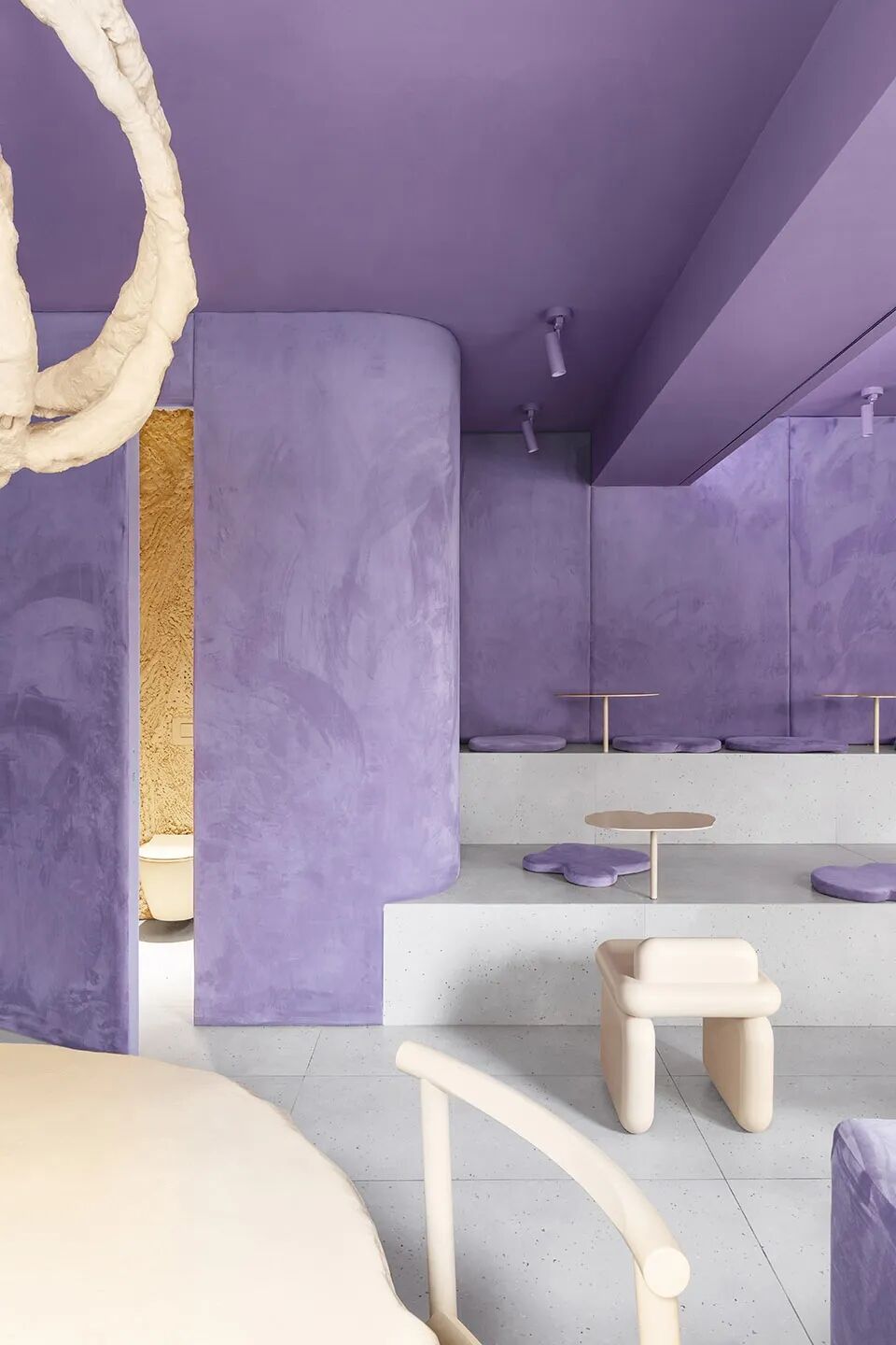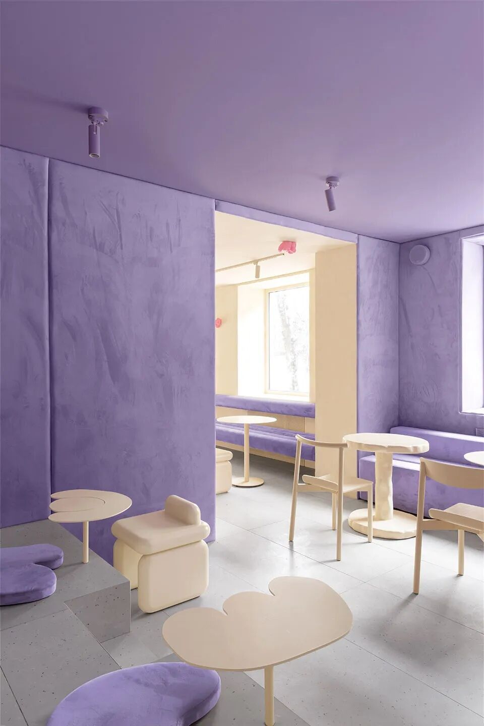 这个紫色咖啡馆位于俄罗斯沃罗涅日市的中心,圆润的室内装饰宛如甜美的俄罗斯甜甜圈,旨在将客人带入一个沉浸式的想象空间。