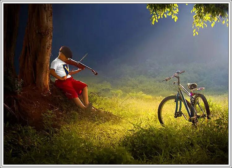越贫困的地区,对生活的美好就有更多的憧憬。这个场景一眼看上去就是摆拍,甚至可以说这个孩子不会拉提琴,他一个人也无法拿着小提琴骑车到这个地方。可能就是摆拍。有的摄影师就不懈一顾地说,摆拍!