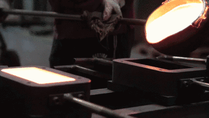 先将玻璃融化然后把滚烫玻璃液倒进模具