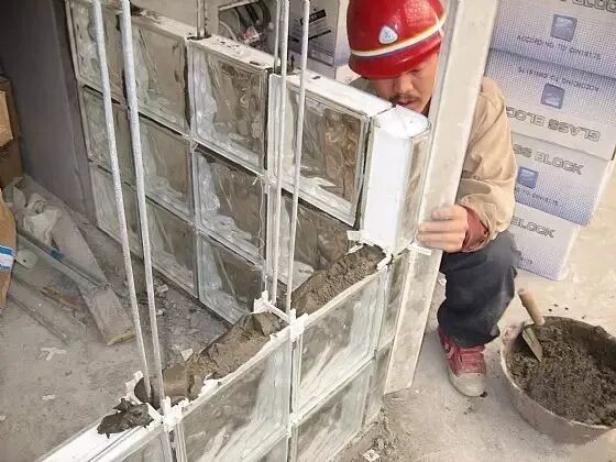 1、施工前先准备所需要的材料,一般需要:玻璃砖、水泥、砂子、掺和料(石膏粉、胶粘剂等)、钢筋、丝毡、槽钢、金属型材框等 2、把白水泥、细砂、建筑胶水、水 按照 10:10:0.3:3比例拌匀成砂浆。 3、安装“+”型或“T”型定位支架。 4、用砂浆砌玻璃砖。自下而上,逐层叠加。5、砌完后,去除定位支架上多余的板块。6、用腻刀勾缝,并去除多余的砂浆。 7、及时用潮湿的抹布擦去玻璃砖上的砂浆。