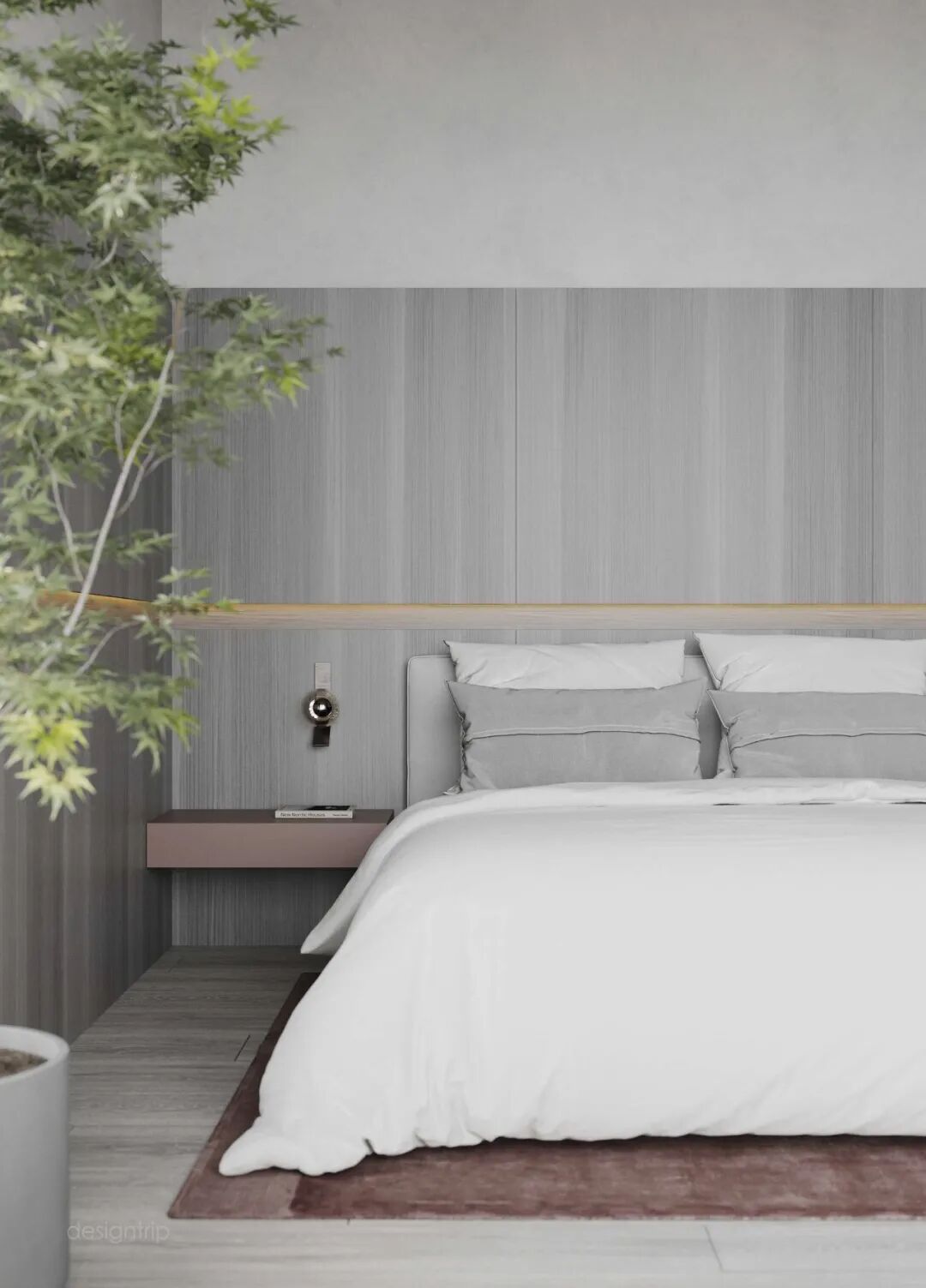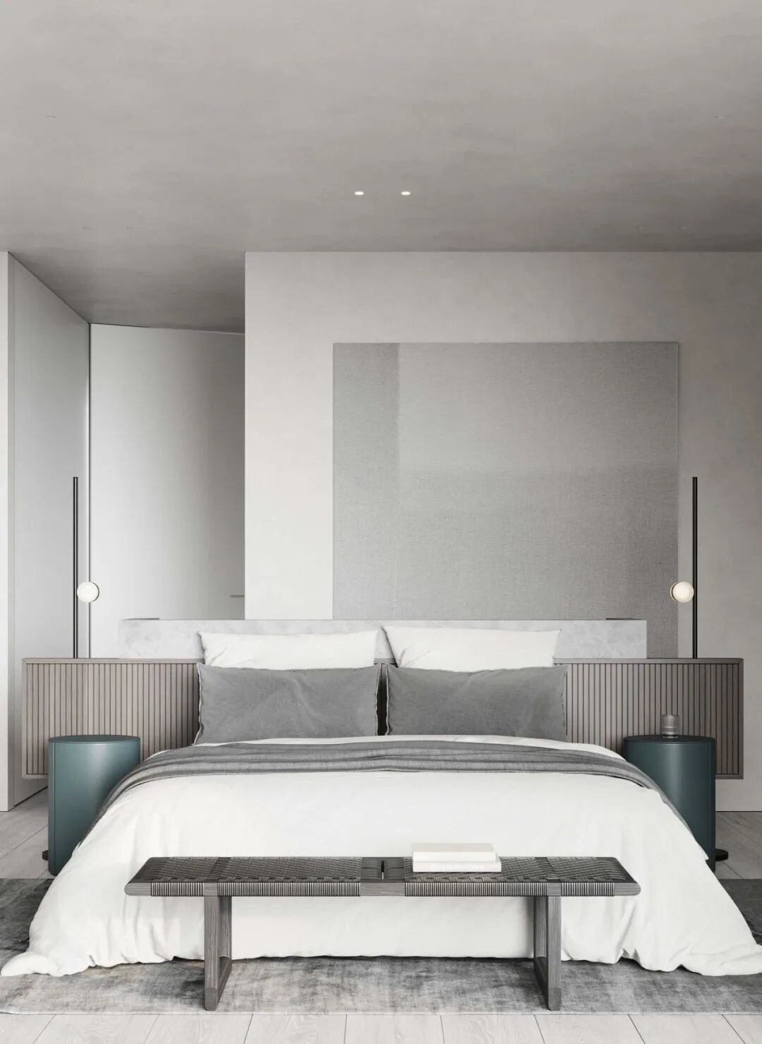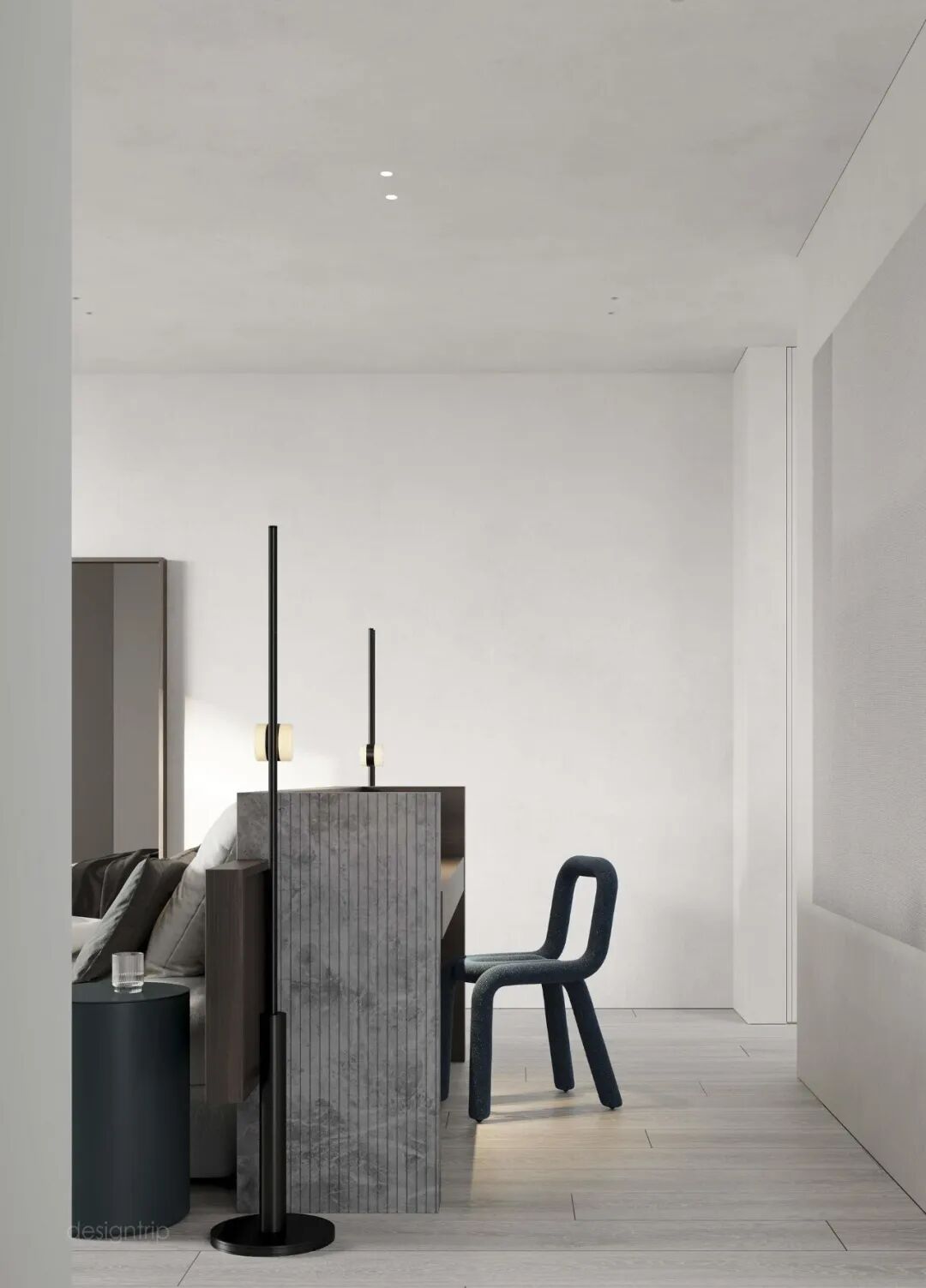 Artem Babayants在卧室大量留白,以突出卧室主调,即静、思。简约风格中穿插着自然主义、现代风格的基调,反映出业主少即是多的生活态度。