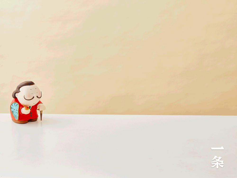 现在,奇幻搞怪的达利变身为一个圆头圆脑的微笑老头,还把那快要融化的时钟背在肩上。