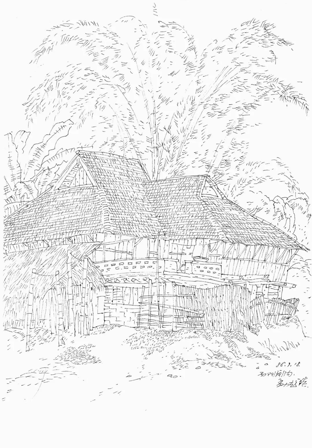傣家竹楼  21cm×29cm  1988年