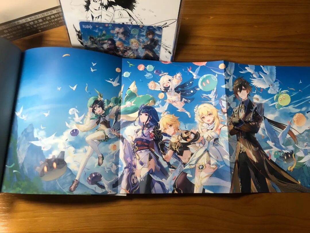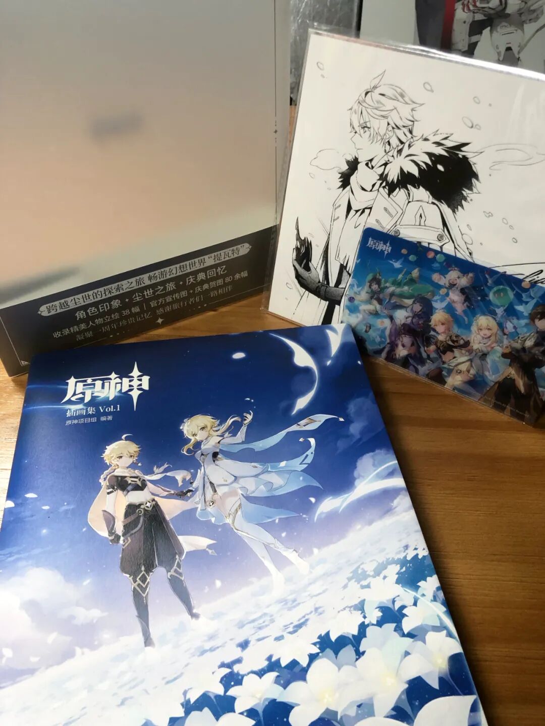 《原神》首本官方画集《原神插画集Vol.1》为原神项目组编著官方首本美术收录集,收录「原神」截止至1.6版本的美术内容,包含角色立绘、宣传图、纪念贺图等内容, 随书附赠PVC典藏纪念卡×1、大尺寸签绘风色纸×1。