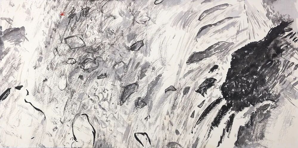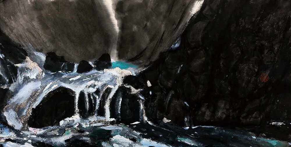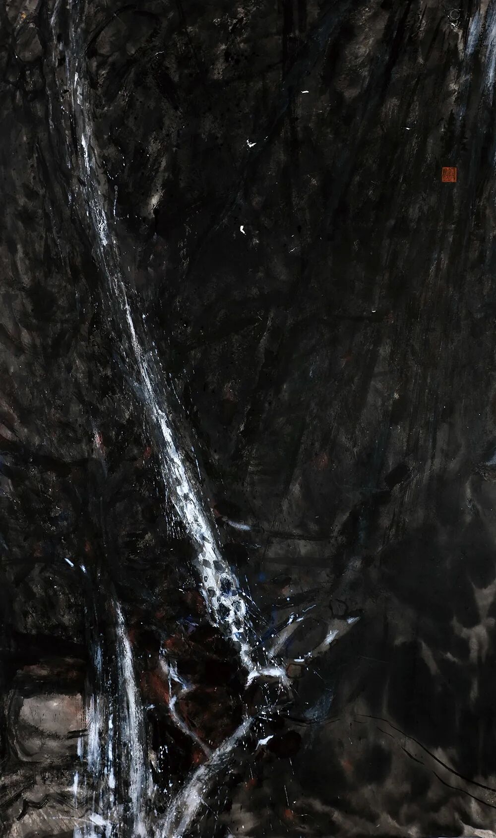 幽谷飞涧   纸本水墨  96cm×61cm    2022