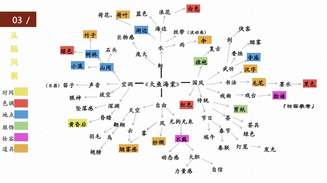 关键词:头脑风暴、思维发散、叙事性、故事性