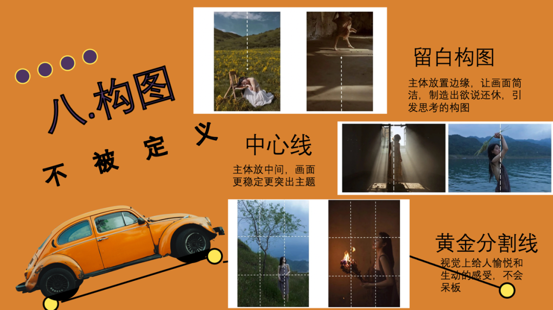 同时,在学生练习部分,较去年的完全开放式主题相比,今年按照不同的颜色为主题分组,分别是:橙、黄、绿、蓝、紫、咖啡、黑、白。颜色的限定有助于学生在学习服装摄影的同时,训练其色彩搭配能力,为后续的专业设计课程打下基础。学生在限定的颜色主题下,以自己独有的经历、视角出发,进行思维发散和调研,最终拍摄出独特的作品。