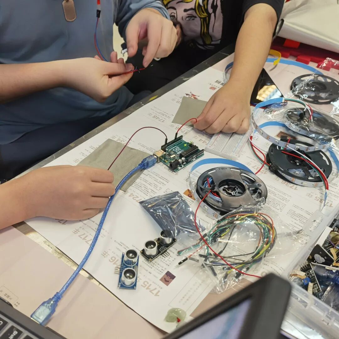 转瞬即逝的时间,就到了课程尾声。很开心选了这么好的课程,让我知道快乐原来这么容易,认识了许多小伙伴,以及老师的教学方式深深折服我们,使我们受益匪浅,小组成员合作从开始懵懵懂懂到后面越来越融洽,过程很快乐,非常感谢老师,让我们了解到很多有用、实用的知识,对Arduino编程有一定的接触和了解,也发现其很多深奥变幻莫测的知识,尝试在人台上用服装与编程电路进行结合设计,真的很开心能够有幸学到这门来之不易的课程,让我们也感受到其他专业的相关内容,以及对高境界科技领域的大开眼界,真是很独特的一门课程,以及老师的负责任也让我们不断地激励自己向前迈进,老师人也好,很喜欢老师!!!嘻嘻嘻 么么哒!!!