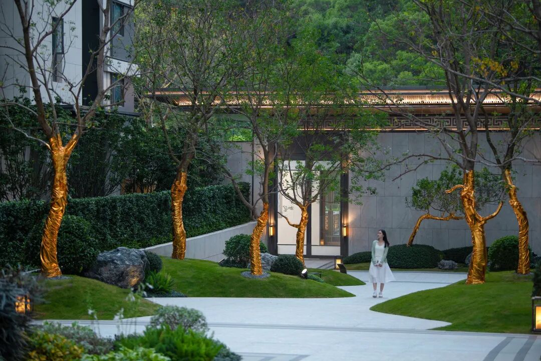 项目位于陕西省西安市。景观设计提取山水自然和古都文化,从现代艺术的审美视角和居住者的情绪出发,将山水相迎的愿景寄托在当代艺术的自由表达中。在传统与现代的蜕变中,在功能与美学的均衡中,让空间兼纳曼妙的自然与丰富人文,实现情感营造与意境表达。
