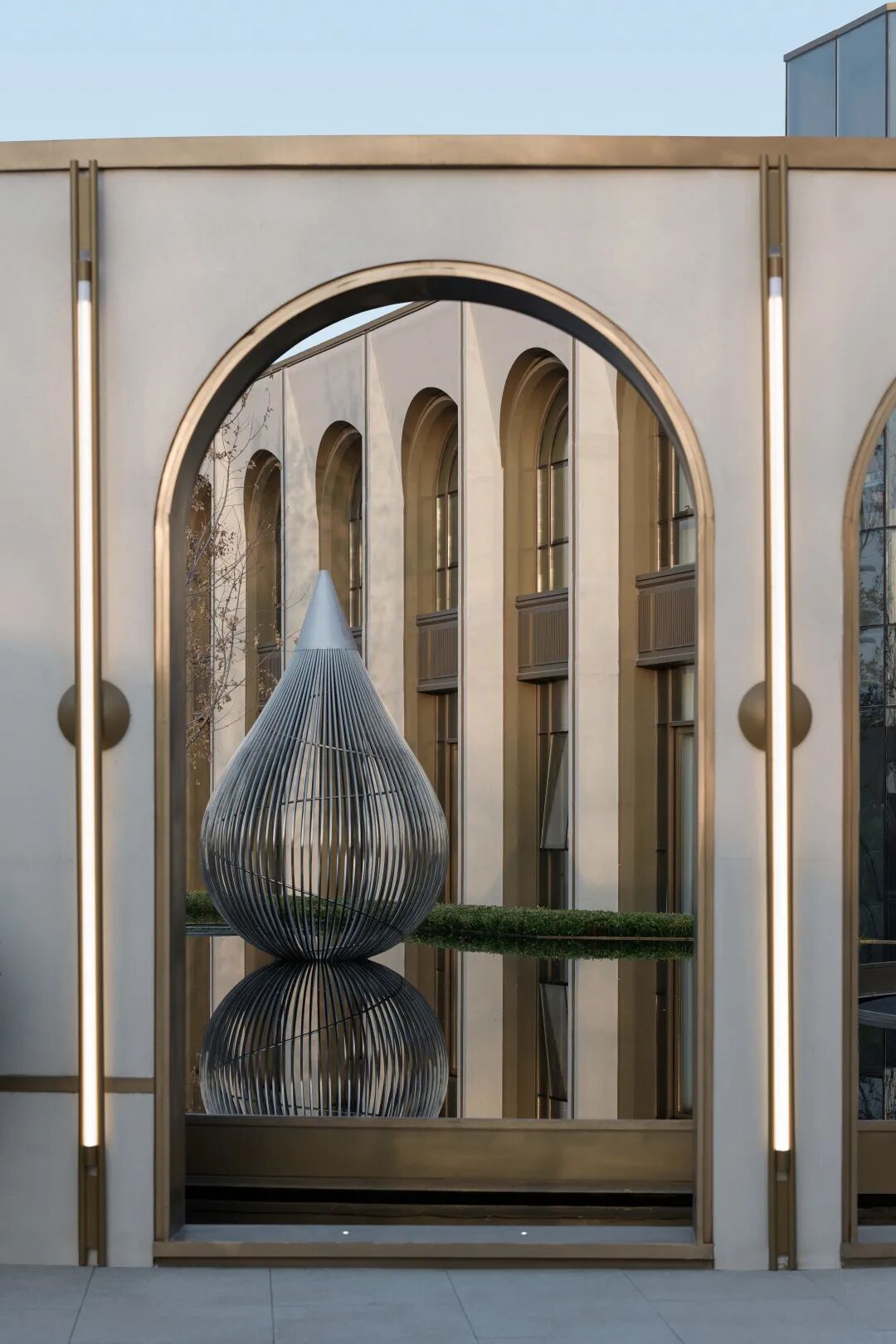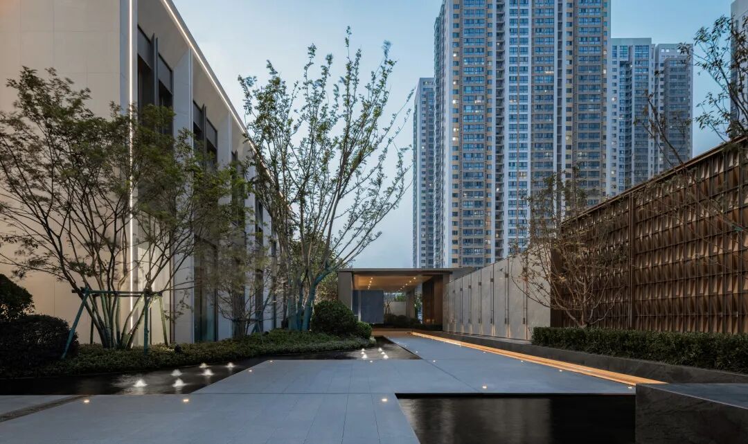 项目位于山东省青岛市北区。景观采用现代艺术设计手法,将雅奢的都心质感与高绿细腻的度假园林融合。为平衡外部城市界面与内部沉浸体验,视觉上巧妙地将建筑入口隐于界面之后;自然植物与半通透的格栅和水景雕塑,以新的形式诠释属于当代生活的惬意居所。