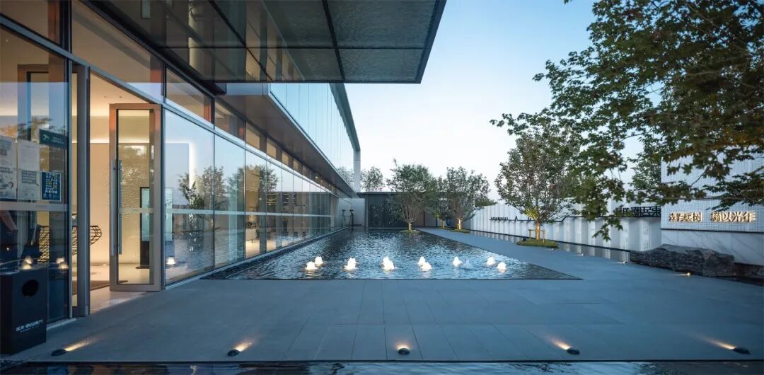 项目位于天津东部空港经济区。景观设计充分发挥点、线、面等艺术造型作用。立体统一,富有张力的沿街展示面,干净简洁的空间,律动但不汹涌,平和却不平凡。在一片独属于自己的宁静氛围空间内,景观与山水相融,人与自然共舞。