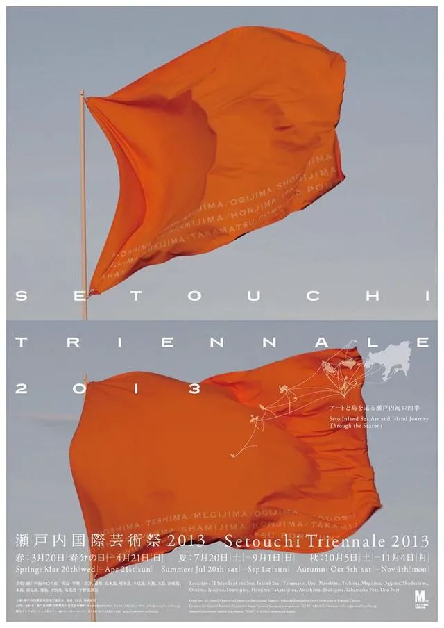 分别采用了朦胧的岛屿景象,以及代表濑户内国际艺术祭的,飞扬旗帜元素