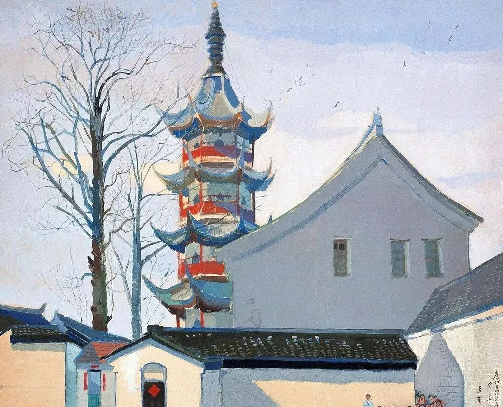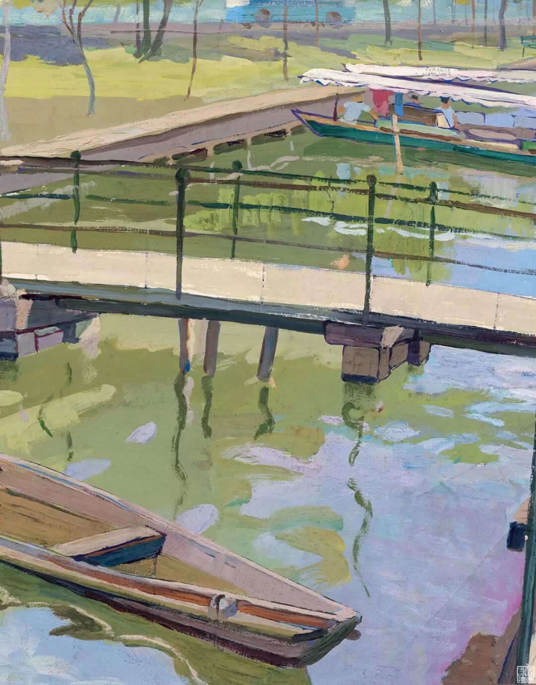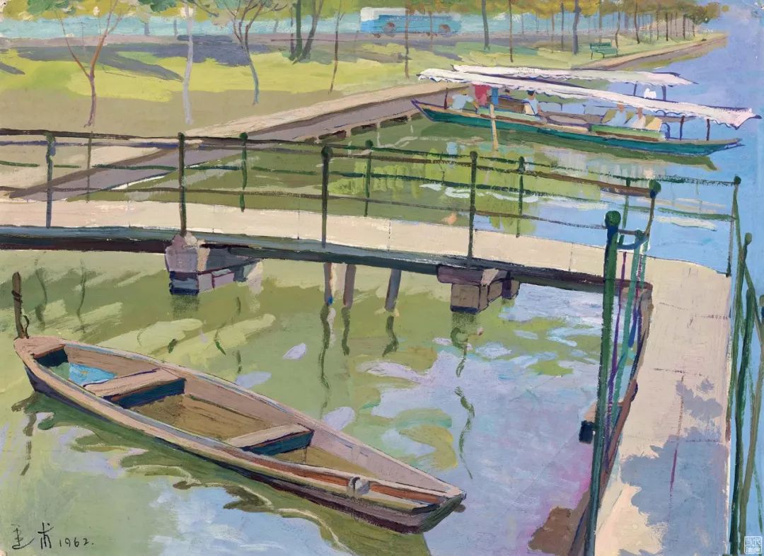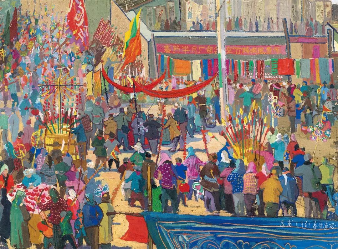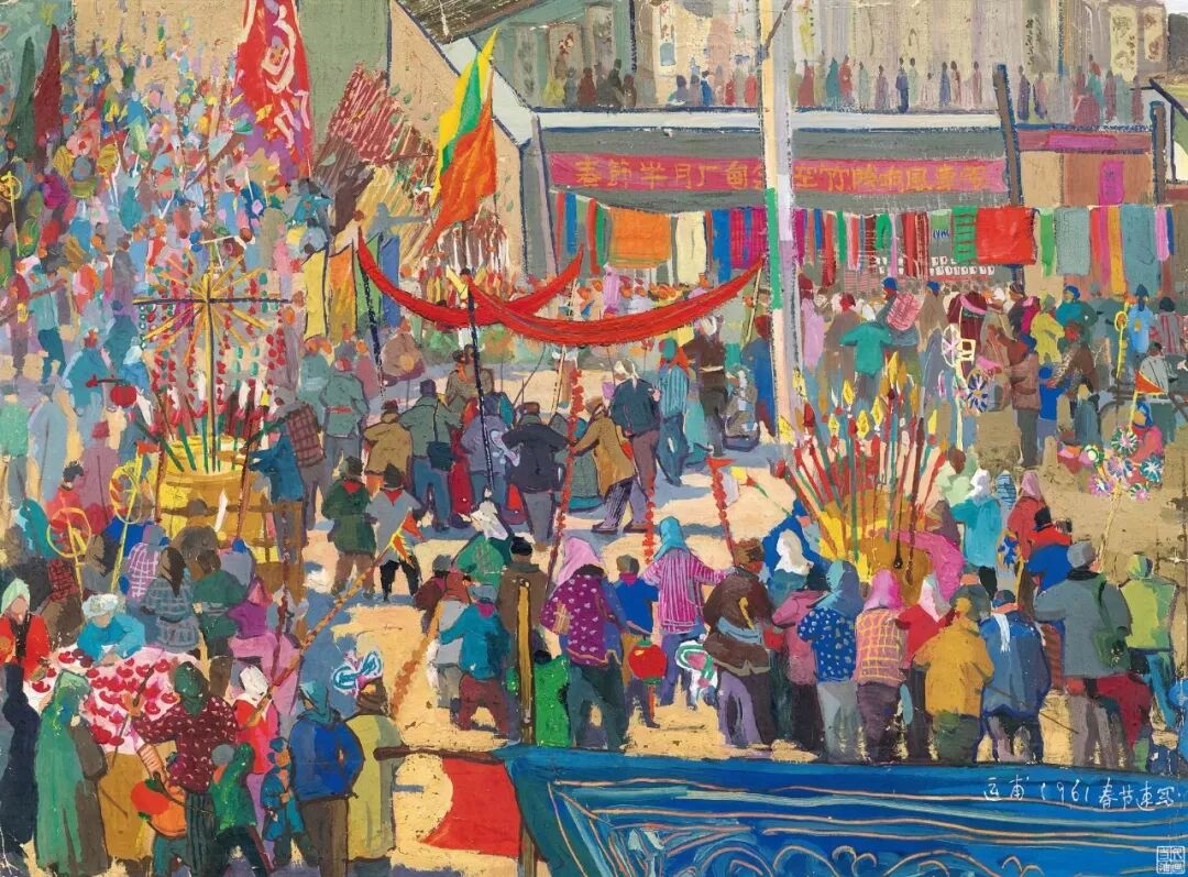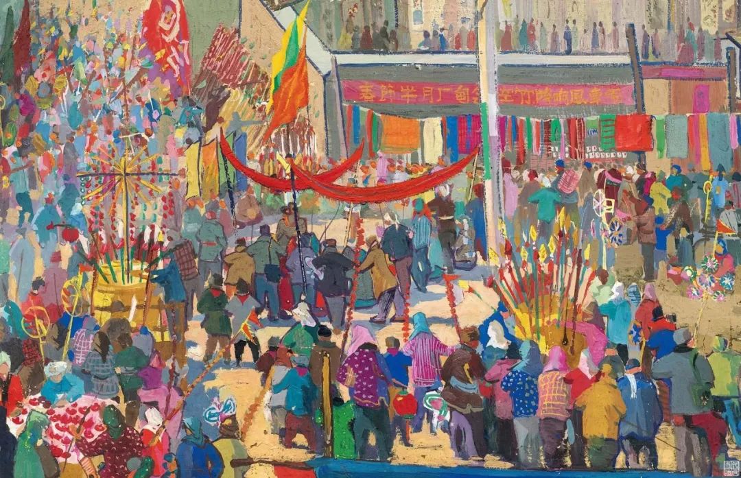 《北京春节厂甸庙会》1961年 纸本 水粉 44×60cm《平湖秋月》 1962年 纸本 水粉 44 × 60cm