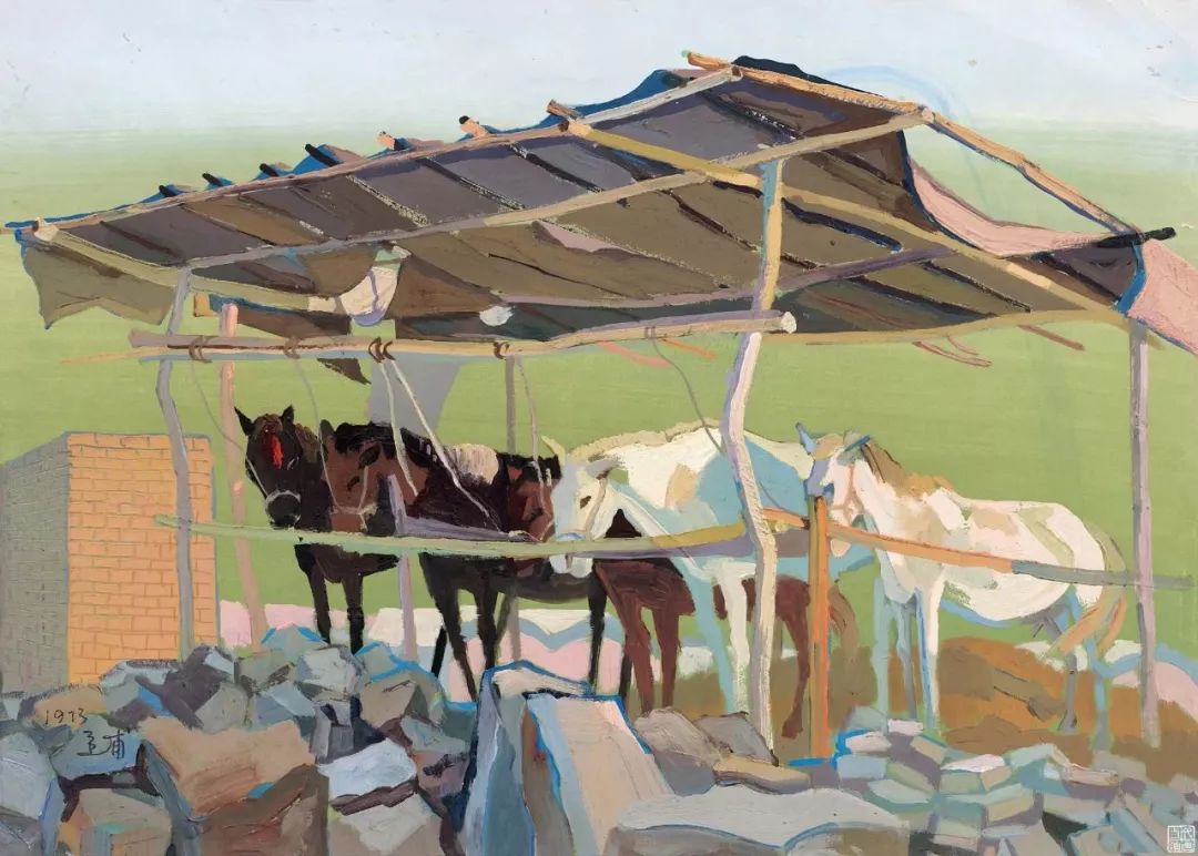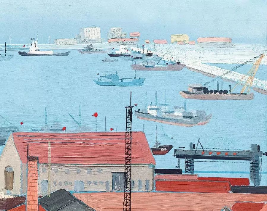 上海造船厂 1973年 纸本 水粉 42 × 54cm