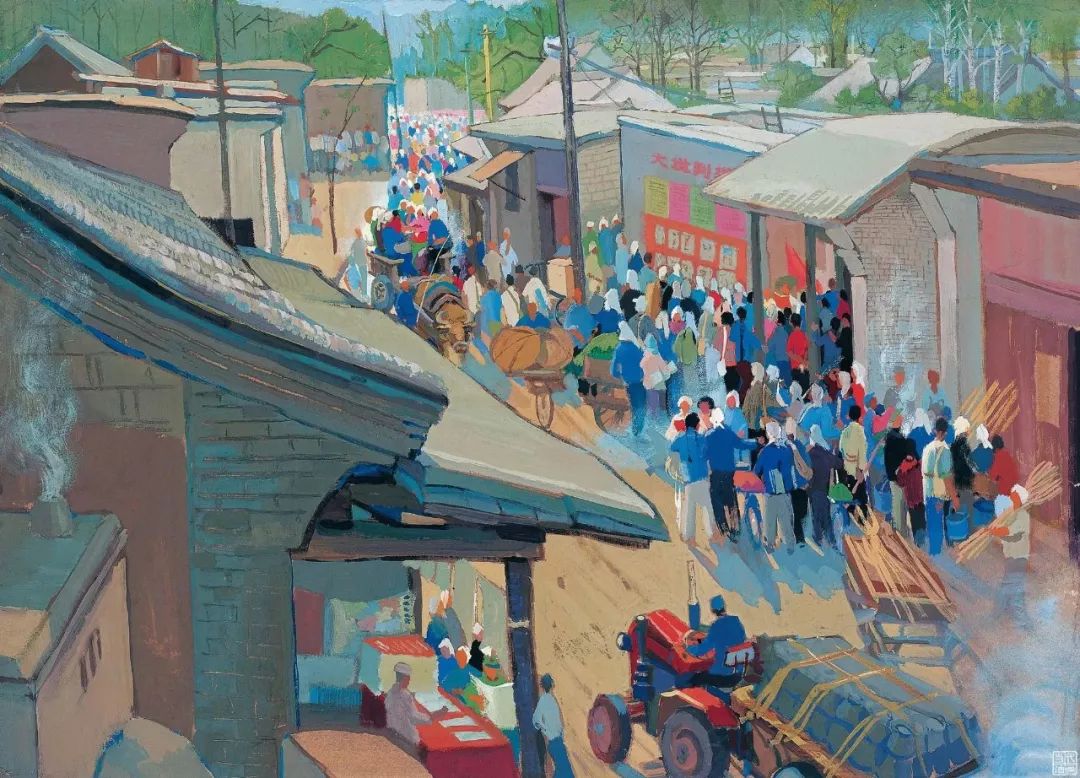 李村参军报名日 1972年 纸本 水粉 54.5 × 46cm
