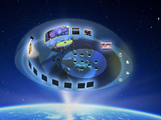 小酒馆采用移动城市技术所建造的,任何人可以通过投影屏进入,小酒馆有一处通往现实的门,我们可以选择自己的数字化身通过此门进入小酒馆(回到现实也需要经过此门)。