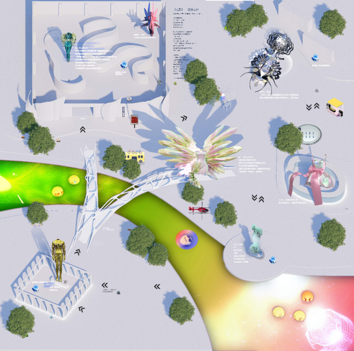 元宇宙里没有物理条件的限制,布展内容可以不限媒介,诗歌、图像、音乐、动画......都可以尝试,大胆开脑洞!