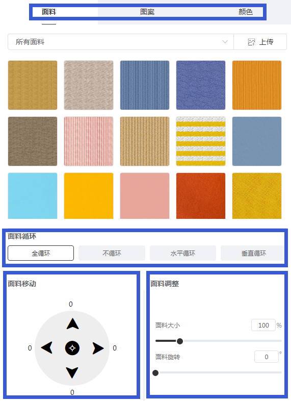 面料、图案、色彩等多种多样的编辑