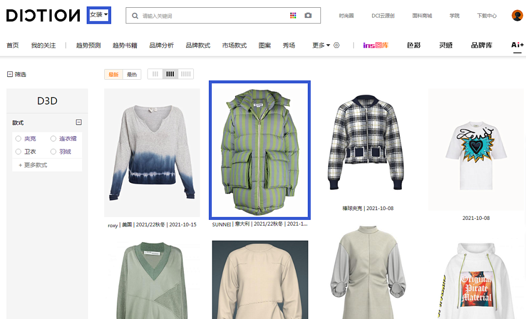 >> AI+栏目内除了有【D3D】工具外,还有【4D智造】、【智能试衣】、【智能搜款式】、【智能搜图案】、【智能搜色】等辅助设计师高效工作的 AI 功能,等待大家去亲自体验哦~
