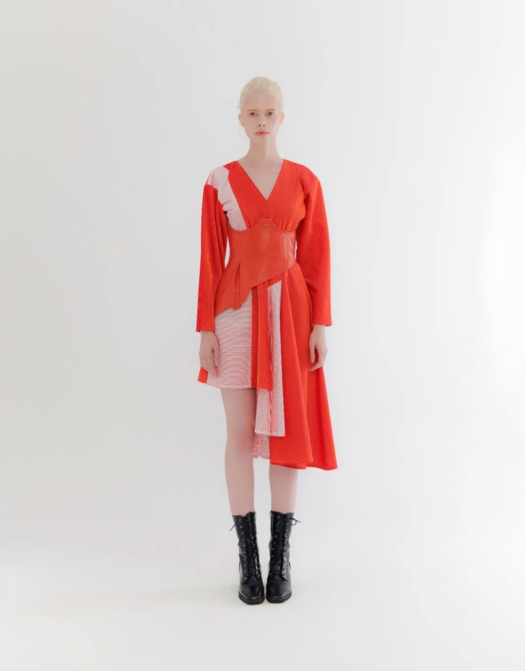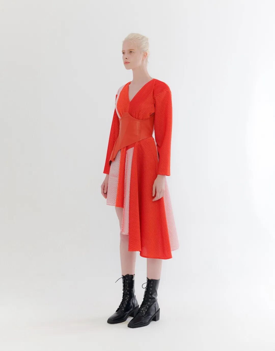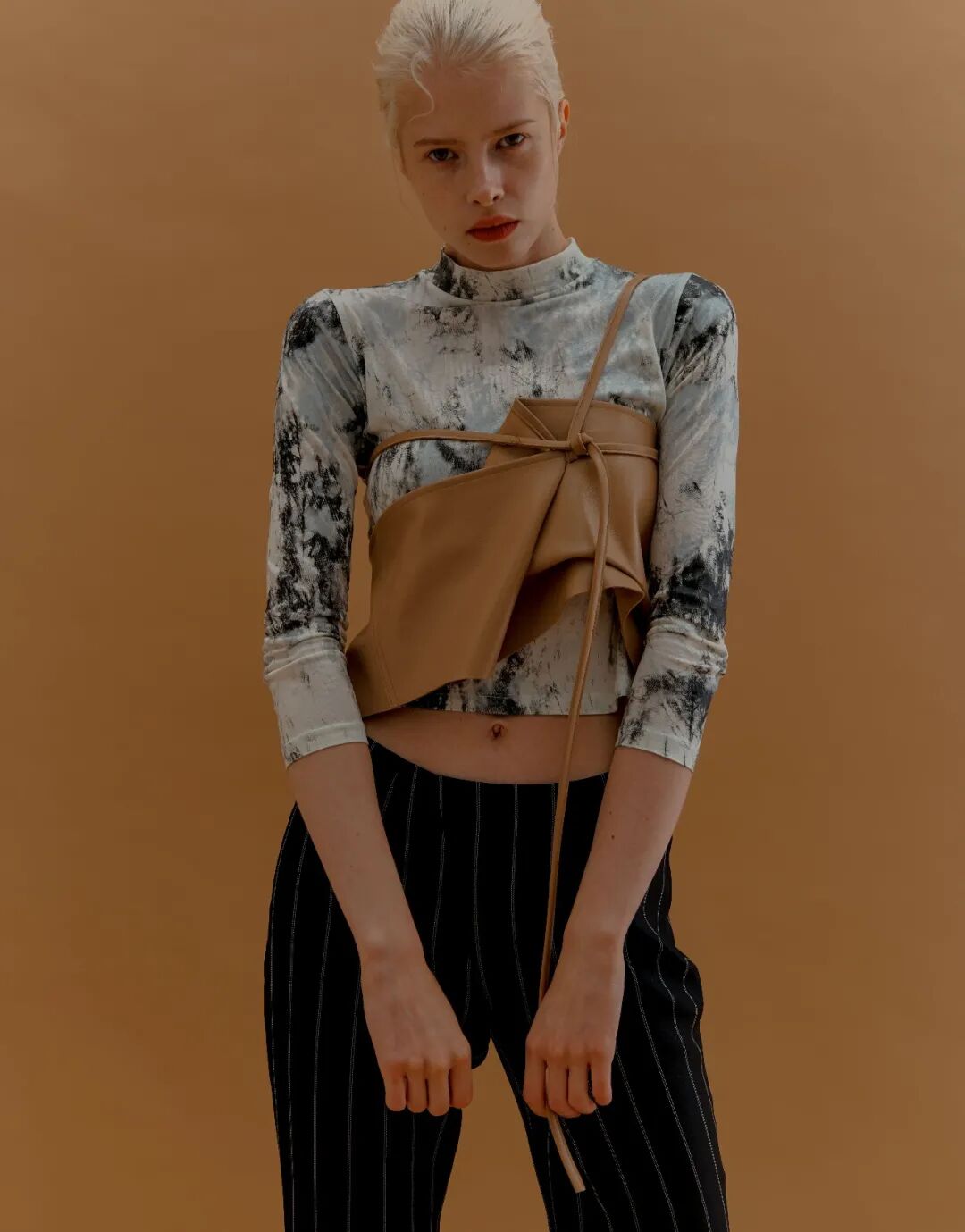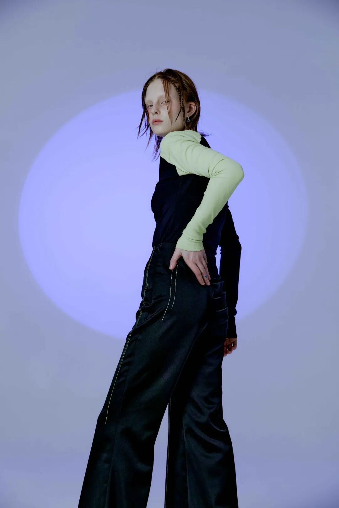 KIMZISU COLLECTION 1 是 Jisoo Kim 的第一个系列,也是对于“在动态中达到和谐”的品牌概念表达的最为直观的系列,设计师十分擅于用颜色与形状的对比来表达情绪的碰撞,对于品牌热爱探索、尊重差异化的核心概念也通过不对称、不规则与不同的材质来表达的淋漓尽致。