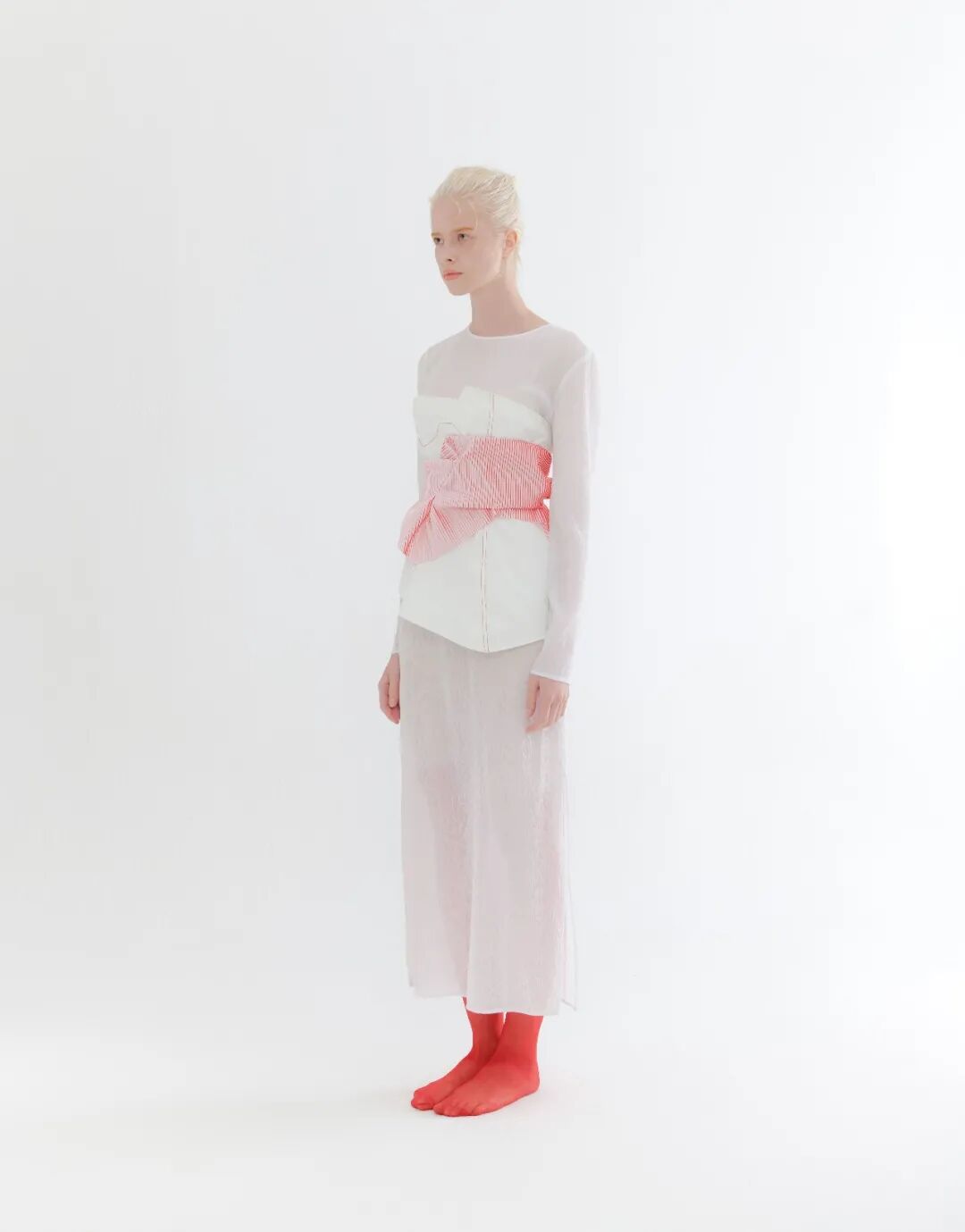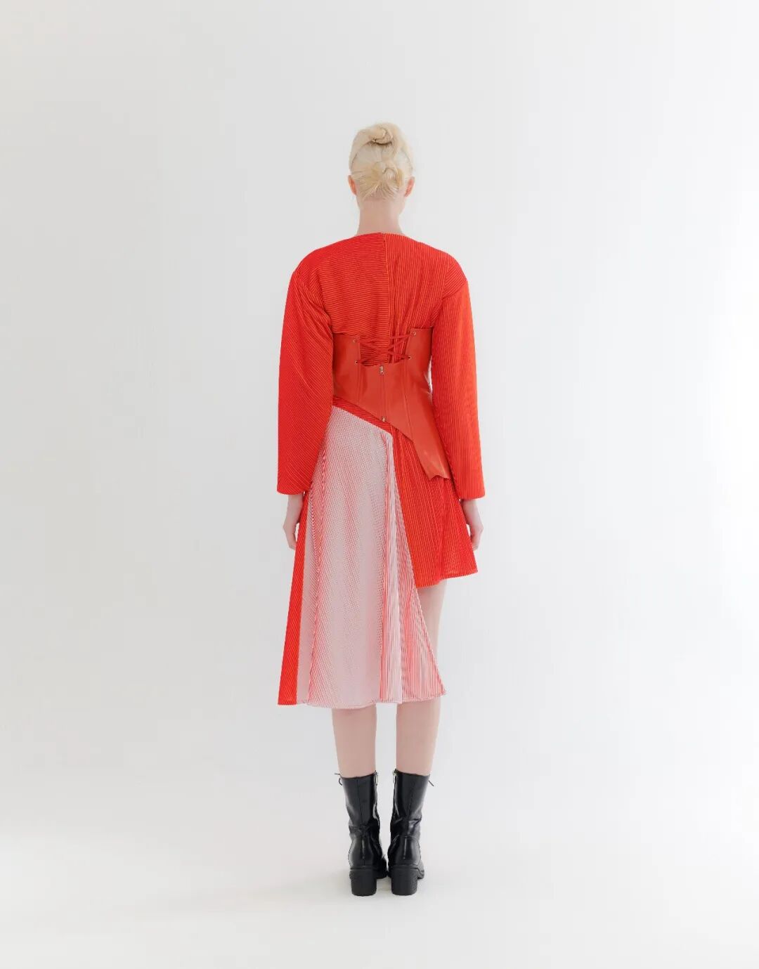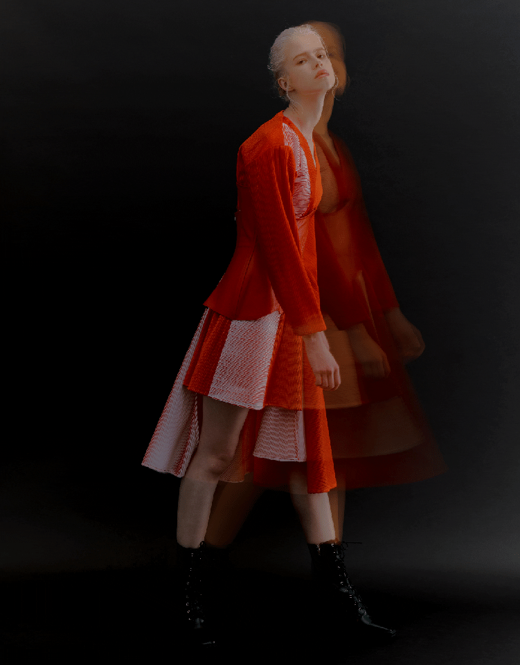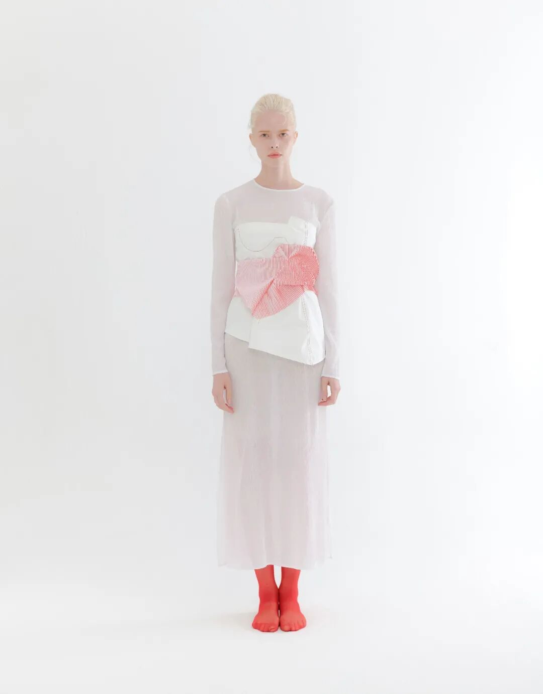 KIMZISU COLLECTION 1 是 Jisoo Kim 的第一个系列,也是对于“在动态中达到和谐”的品牌概念表达的最为直观的系列,设计师十分擅于用颜色与形状的对比来表达情绪的碰撞,对于品牌热爱探索、尊重差异化的核心概念也通过不对称、不规则与不同的材质来表达的淋漓尽致。