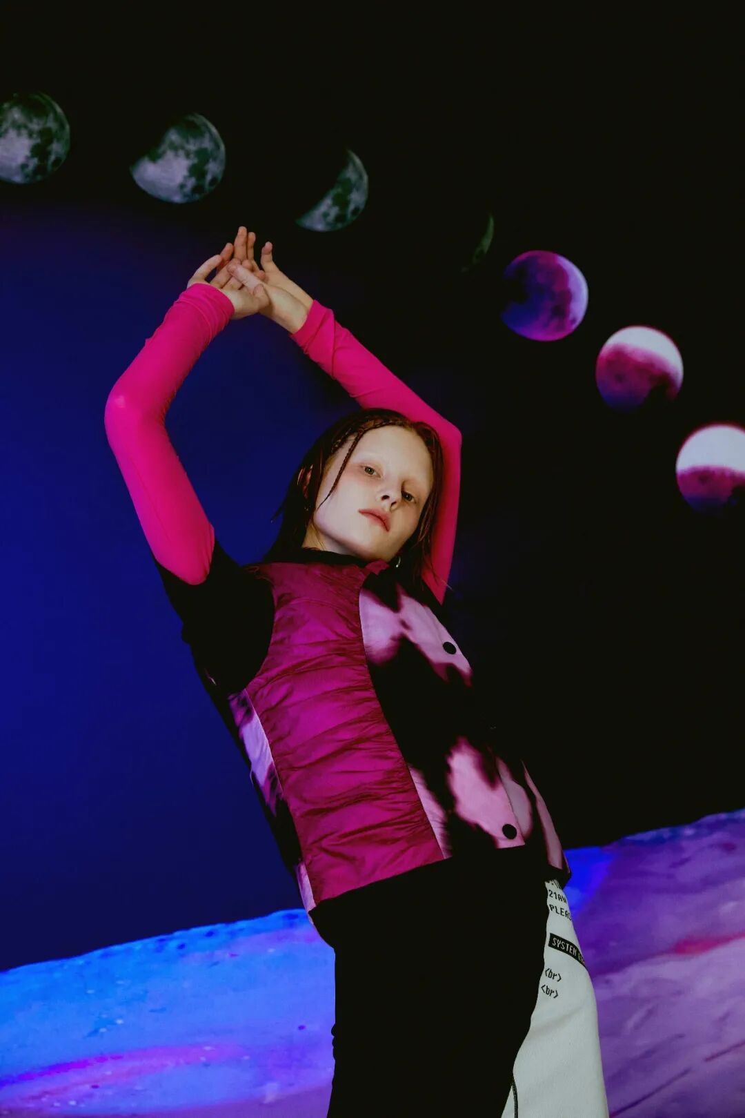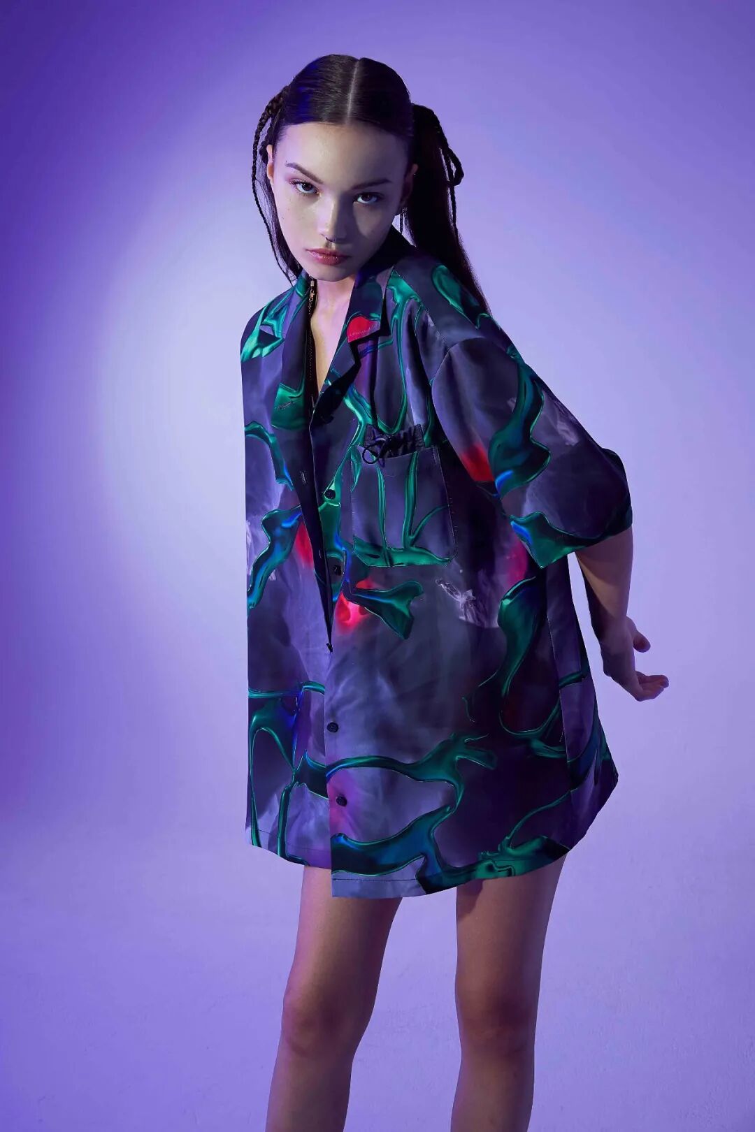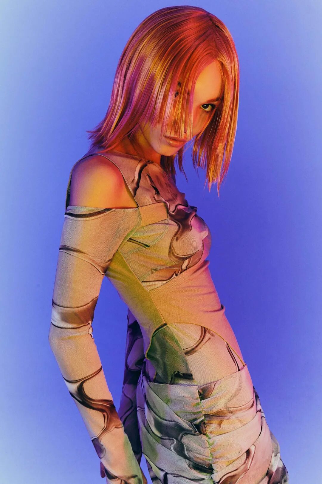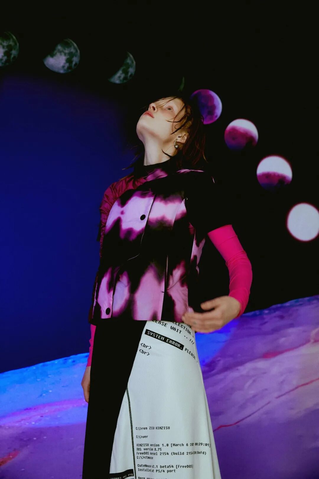 2021秋冬系列的主题是数字世界,灵感来自于快速变化的大数据时代所产生的动态和谐,Jisoo 受此启发创造了一个充满纹理细节与尖锐形状的霓虹灯般的绚丽世界。